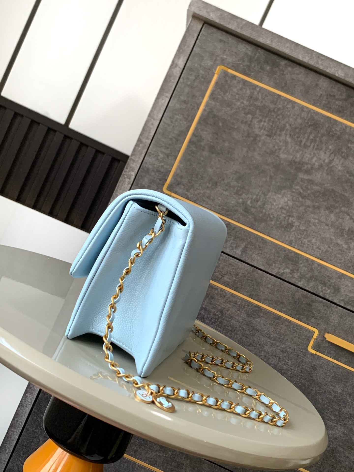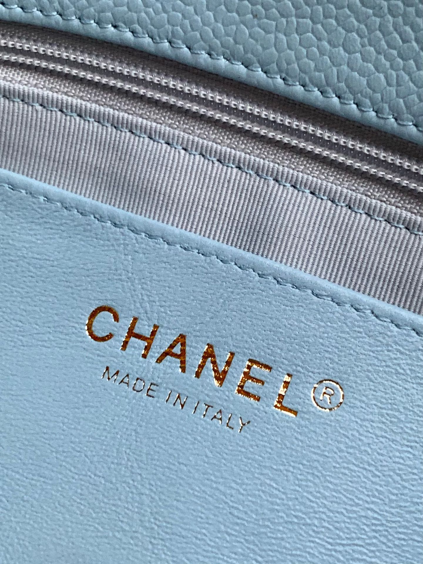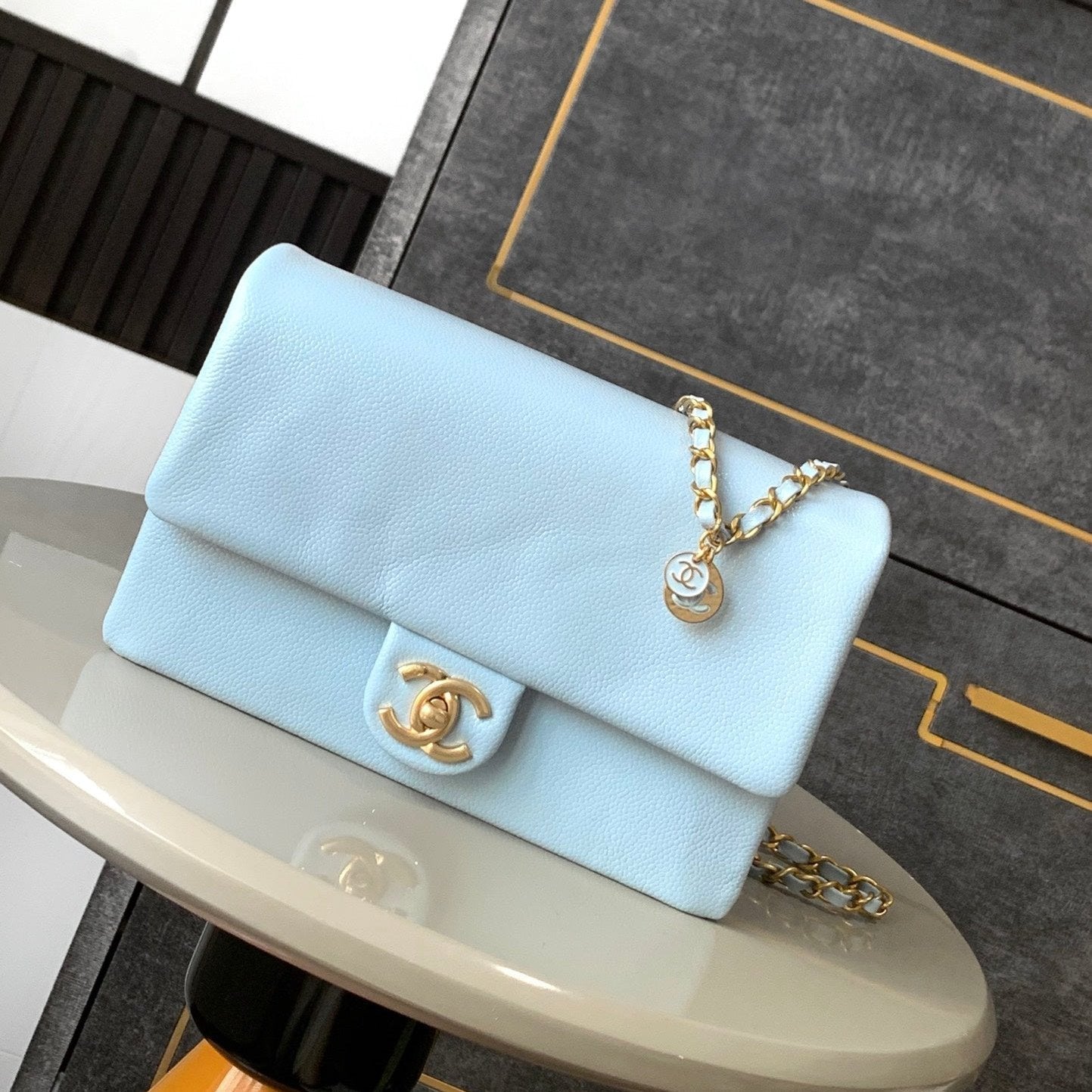 CLASSIC FLAP BAG 22 IN SKY BLUE CALFSKIN GOLD HARDWARE