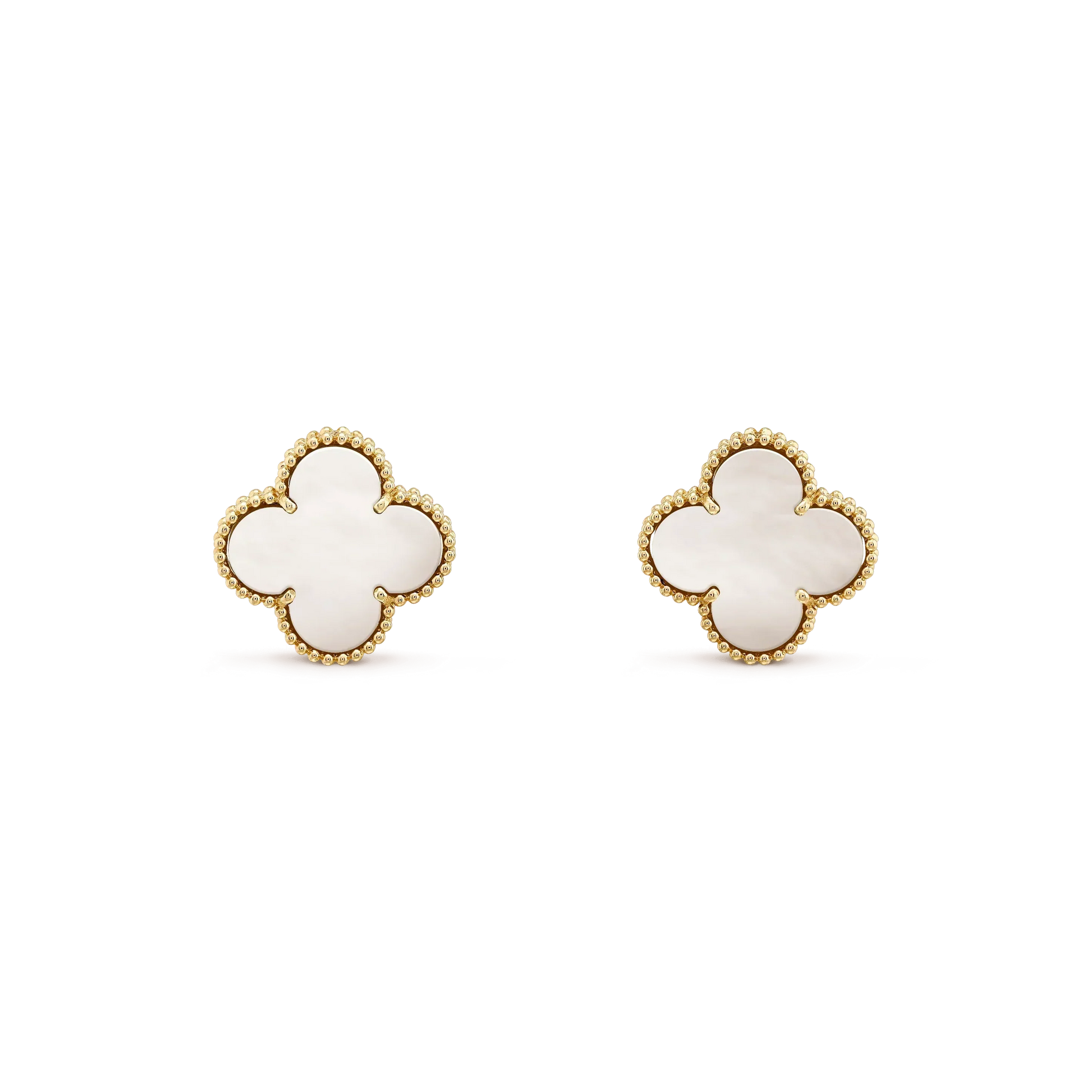 DIANA CLOVER MEDIUM 1 MOTIFS WHITE MOP STUD EARRINGS