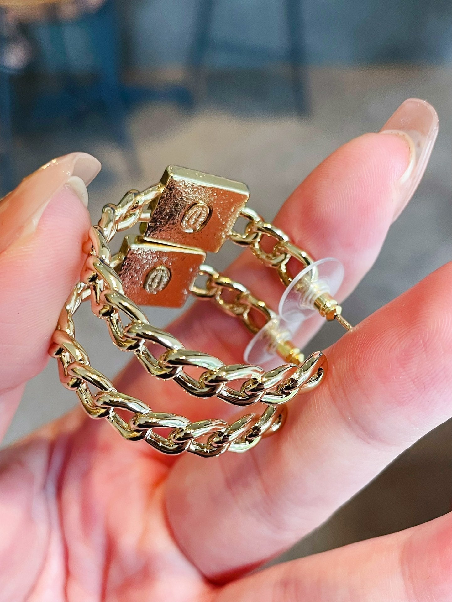 DOUBLE C BLACK WHITE HOOP EARRINGS