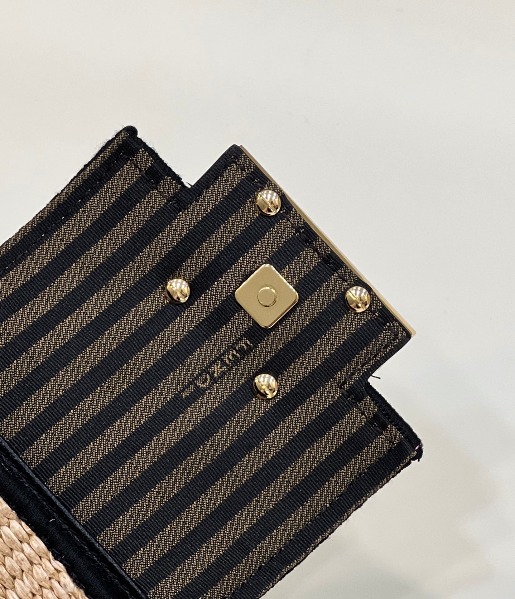 FENDI NANO BAGUETTE 11 BAG IN BEIGE MIX BLACK RAFFIA WITH STRAP GOLD HARDWARE
