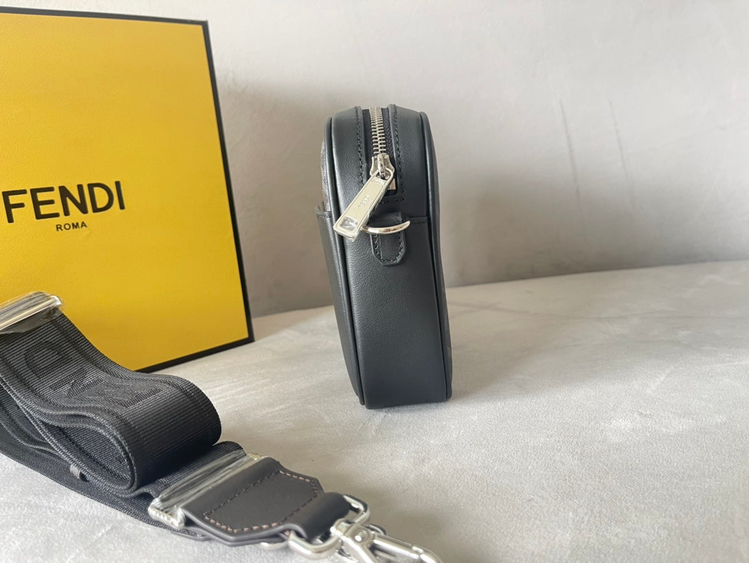 FENDI ROMA 22 CLUTCH BAG IN DARK GREY FF CALFSKIN SILVER HARDWARE WITH WHITE LOGO