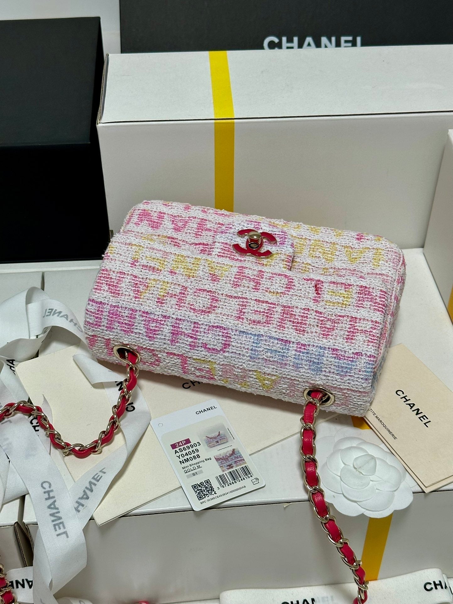 FLAP BAG 20 IN COLORFUL TWEED GOLD HARDWARE