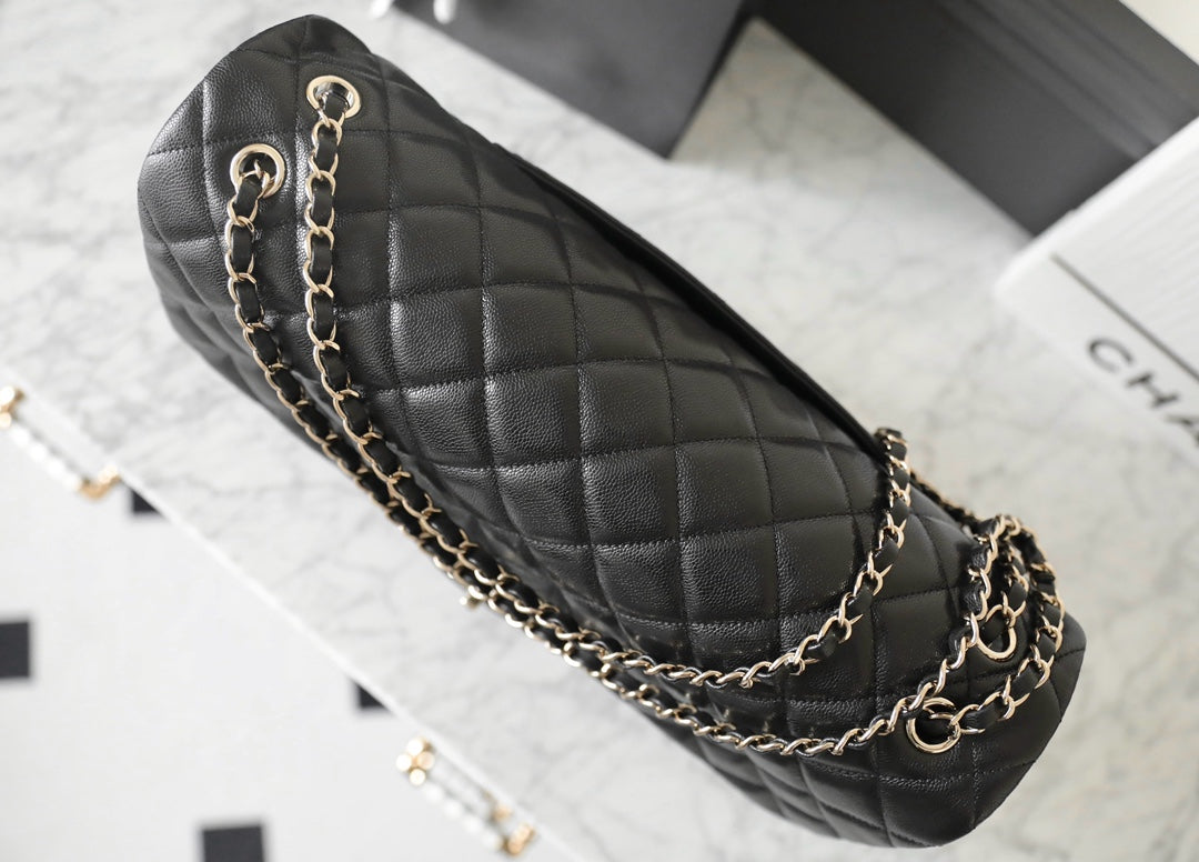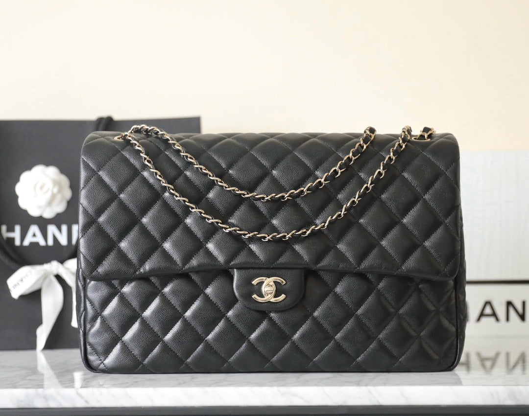 FLAP BAG MAXI 40CM BLACK CAVIAR SILVER HARDWARE