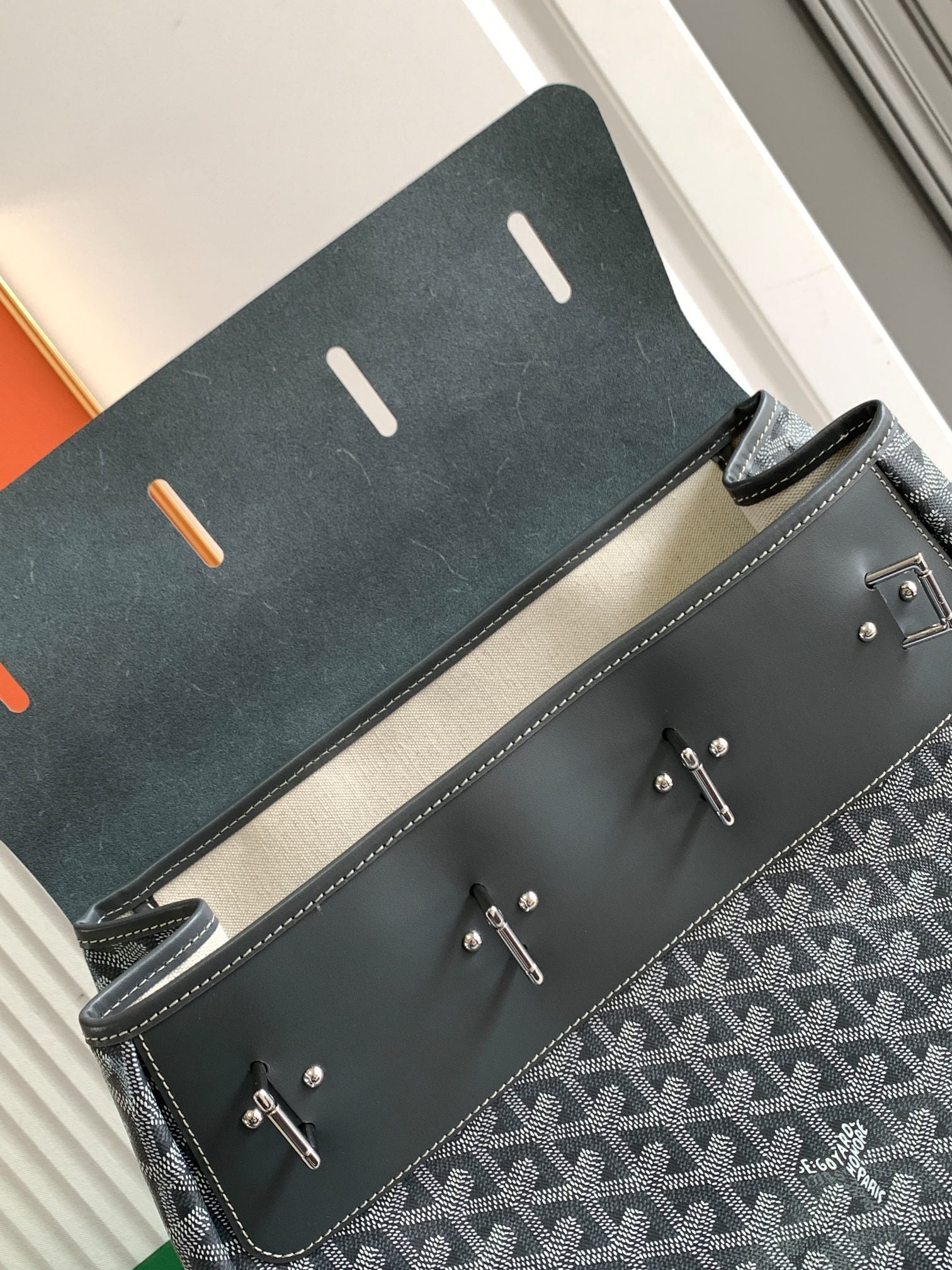 - Material: Goyardine canvas & chevroches calfskin