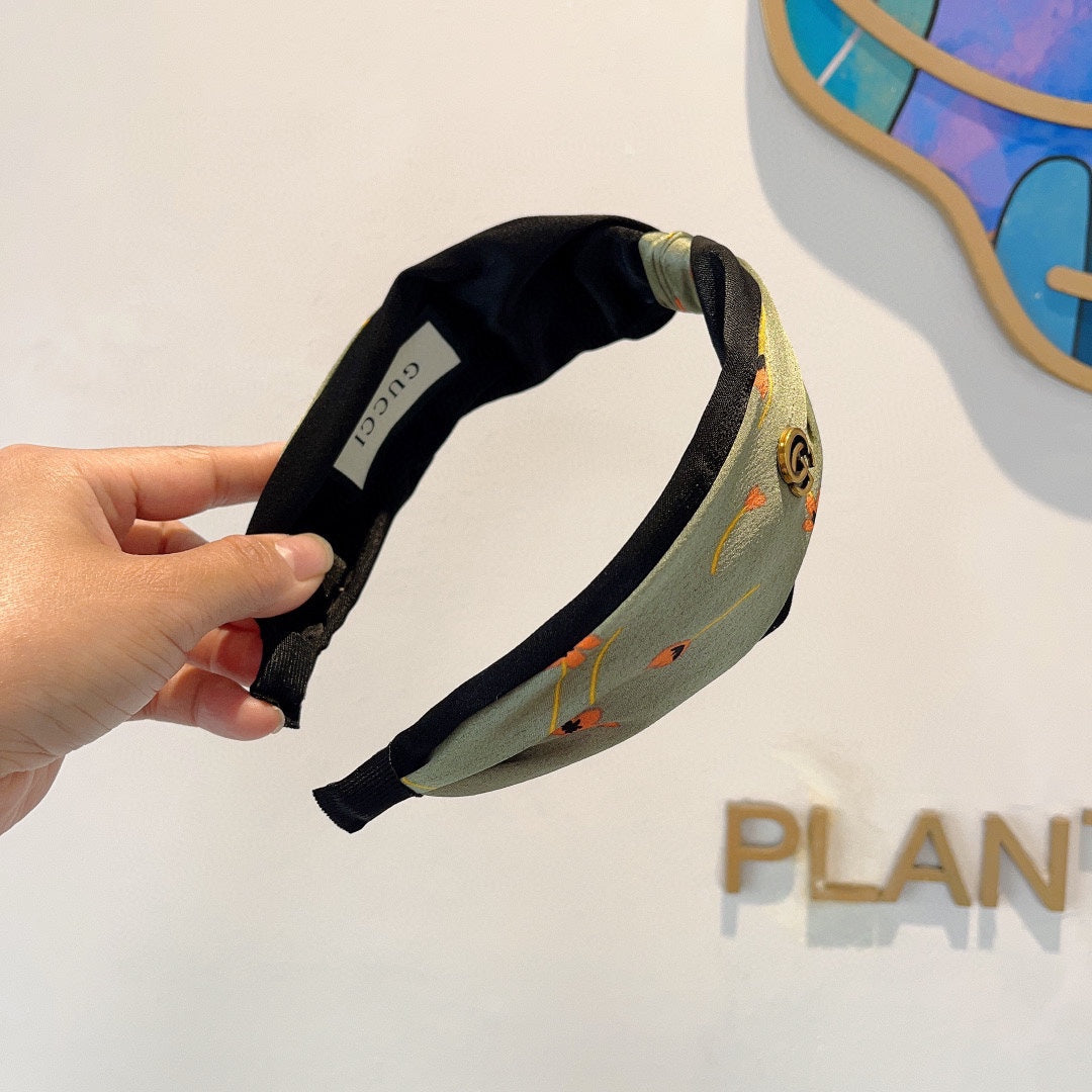 HAIRBAND WITH FLOWER PRINT IN MOSS GREEN SILK 398865