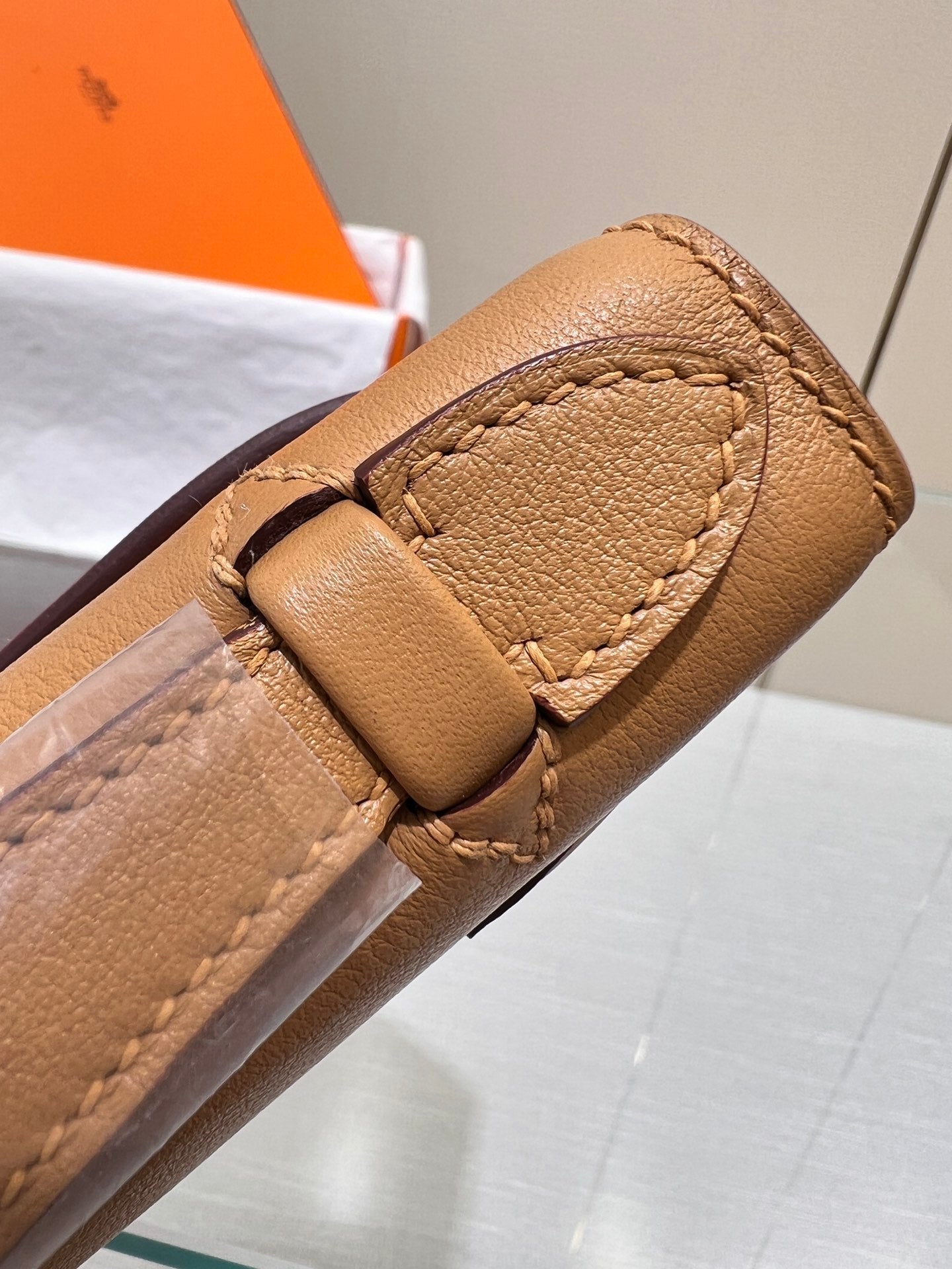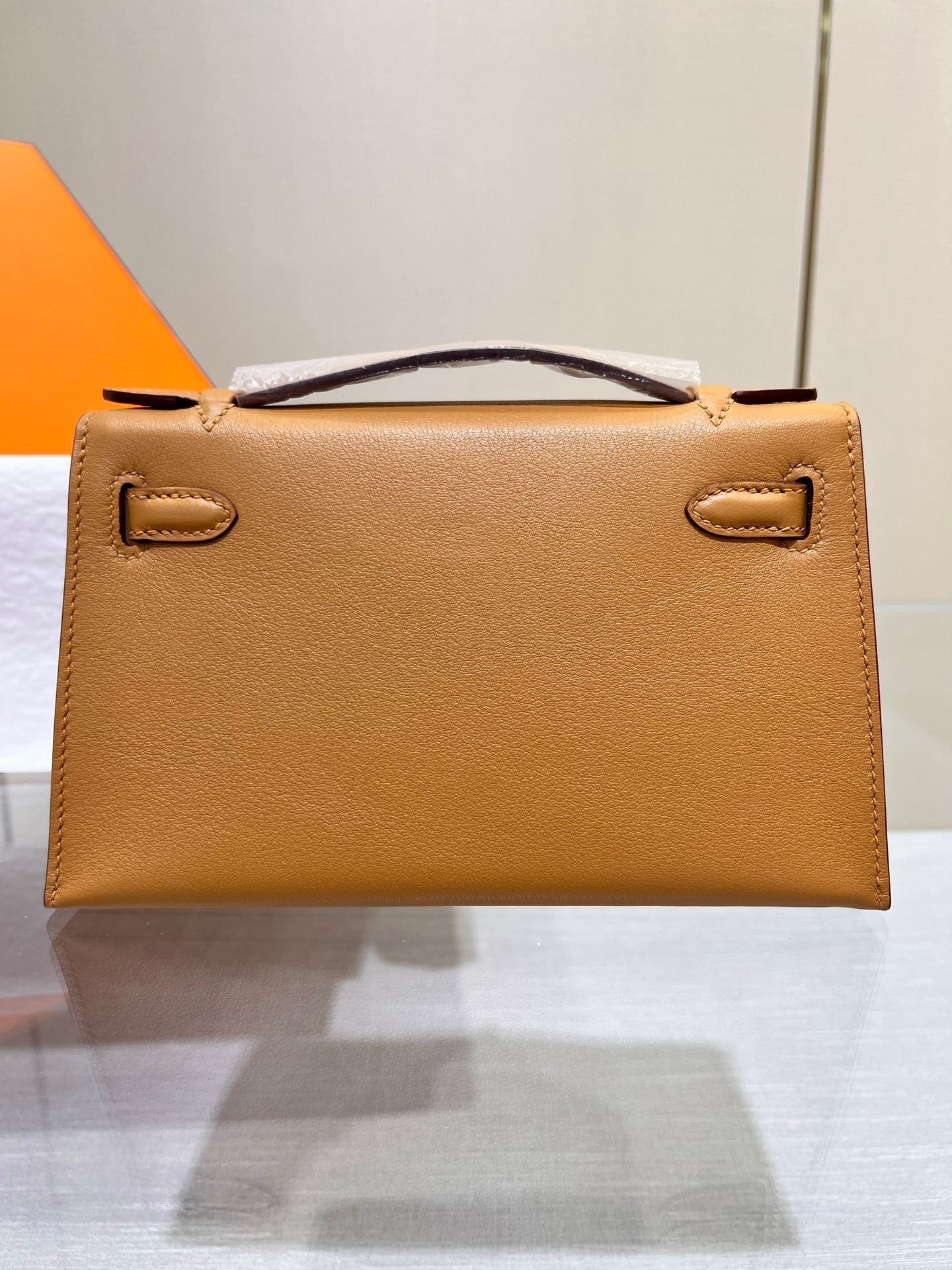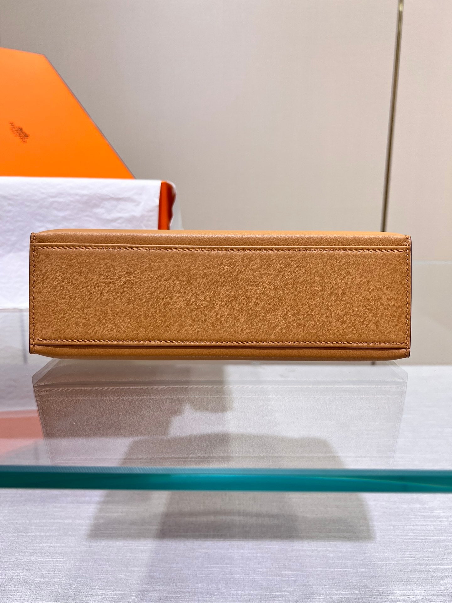 HM KELLY POCHETTE 22CM BROWN SWIFT SILVER HARDWARE