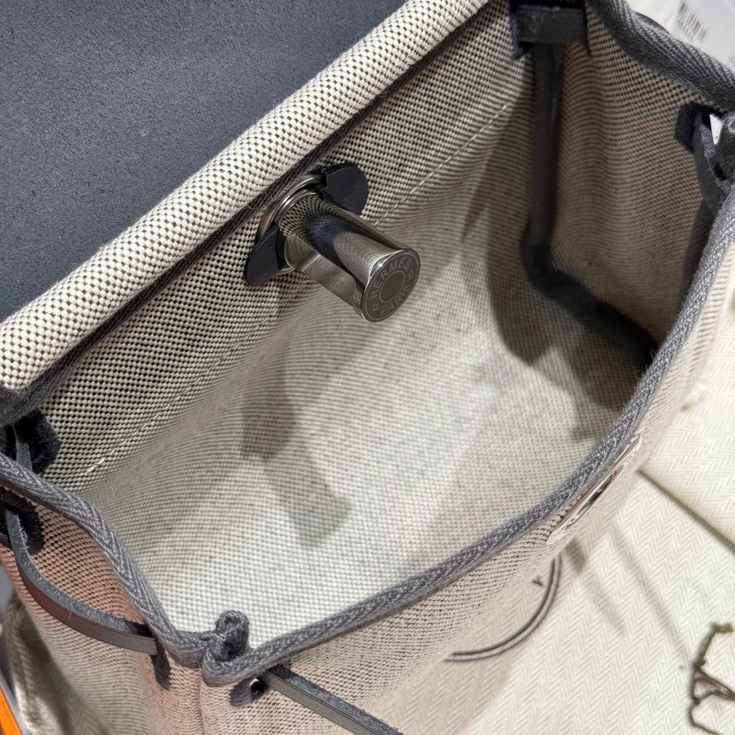HM Mini Herbag Silver Buckle 20 Beige Grey Canvas and Hunter Cowhide 243290