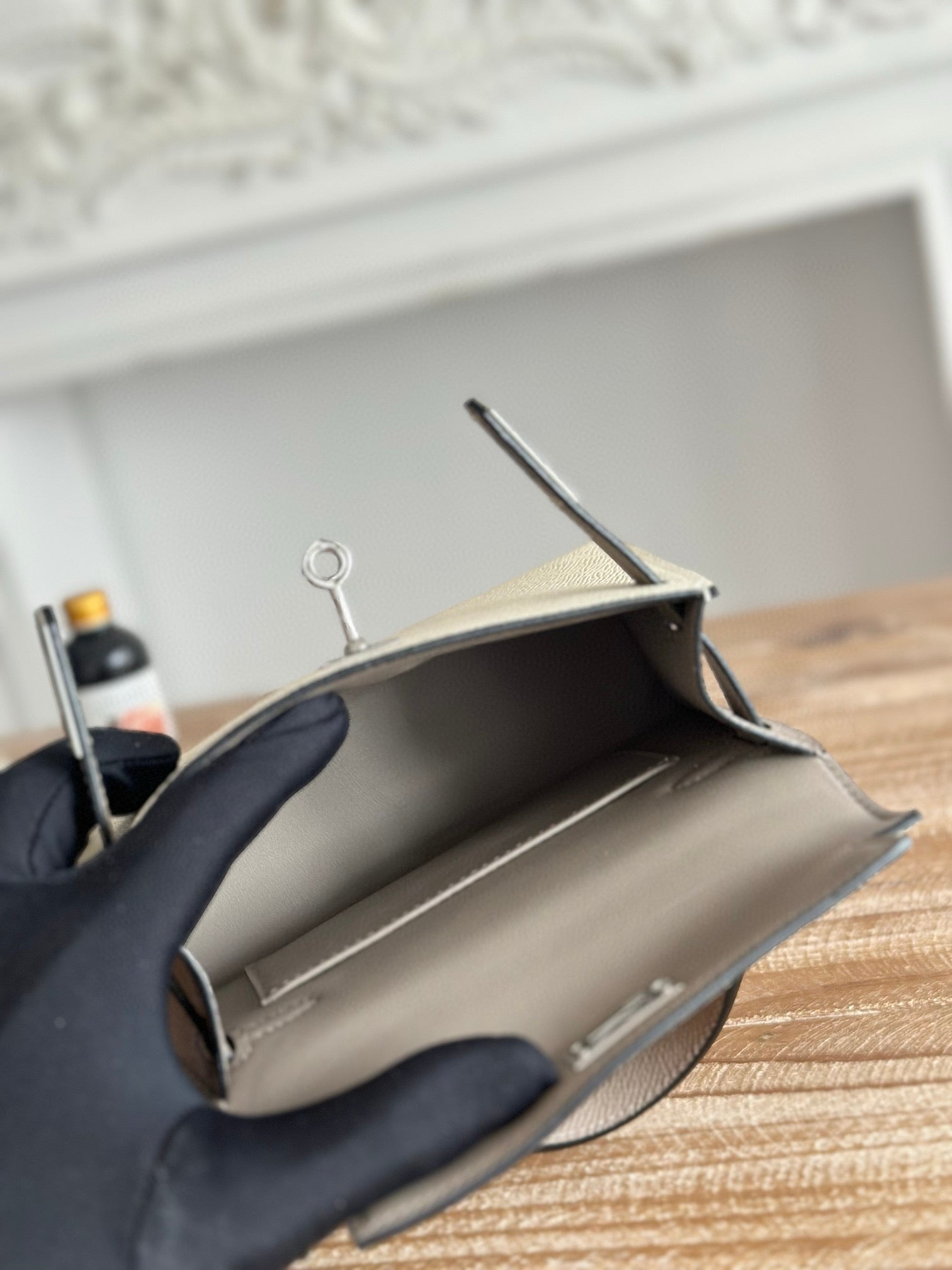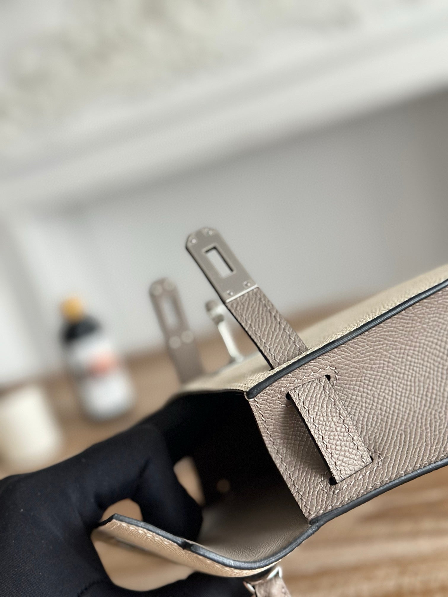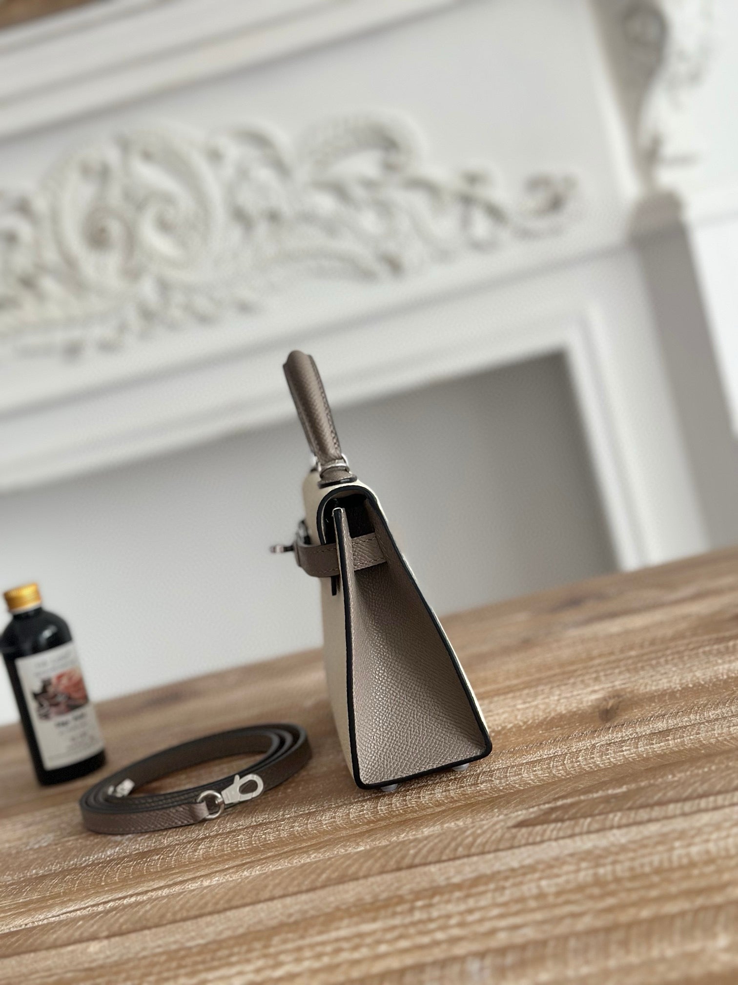 HM Mini Kelly 19cm Beige Mix Brown Epsom Silver Hardware