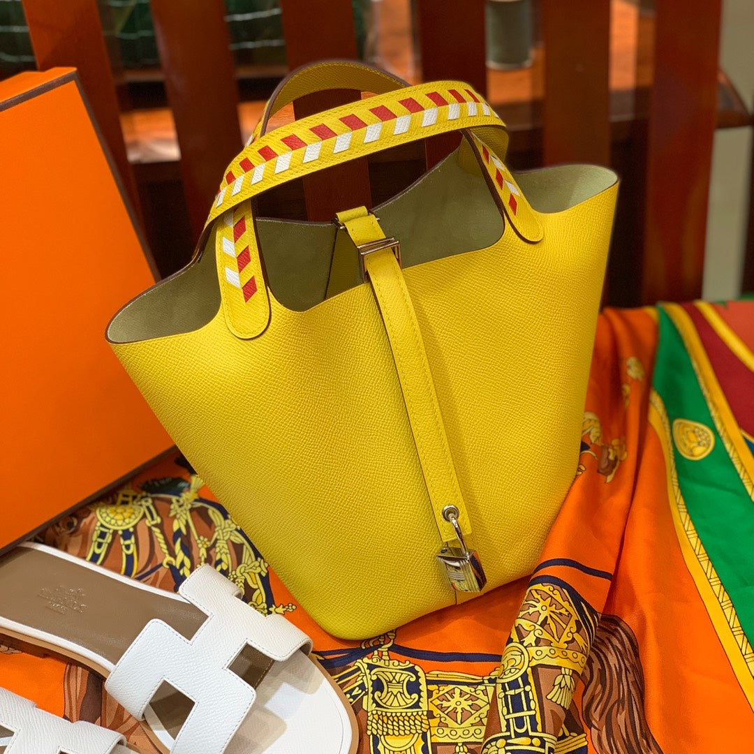 HM PICOTIN LOCK 18 LEMON EPSOM WITH BRAID STRAP