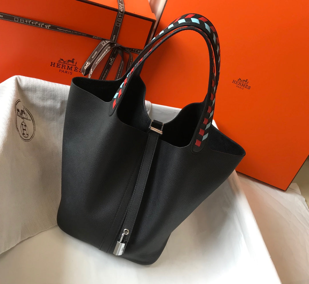 HM PICOTIN LOCK 22 BLACK EPSOM WITH BRAID STRAP