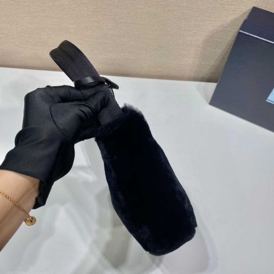 HOBO BAG 23 IN BLACK RABBIT FUR