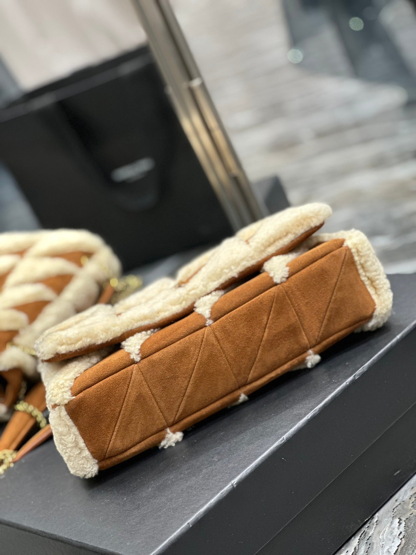 JAMIE BAG 25 IN BROWN SUEDE MIX BEIGE SHEARLING GOLD HARDWARE