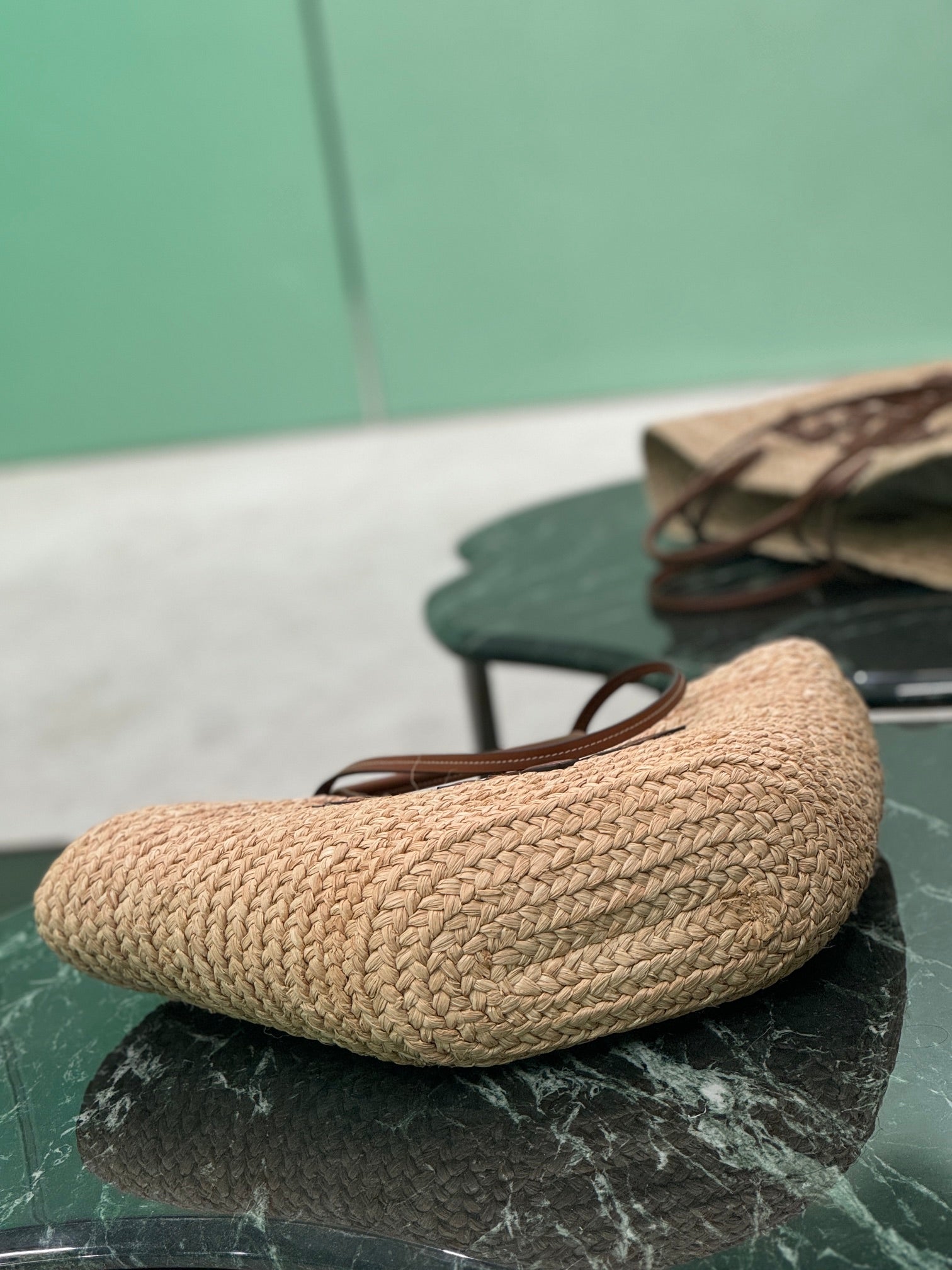 LARGE TOTE BAG 56 IN BEIGE RAFFIA GRASS AND BROWN CALFSKIN TRIM