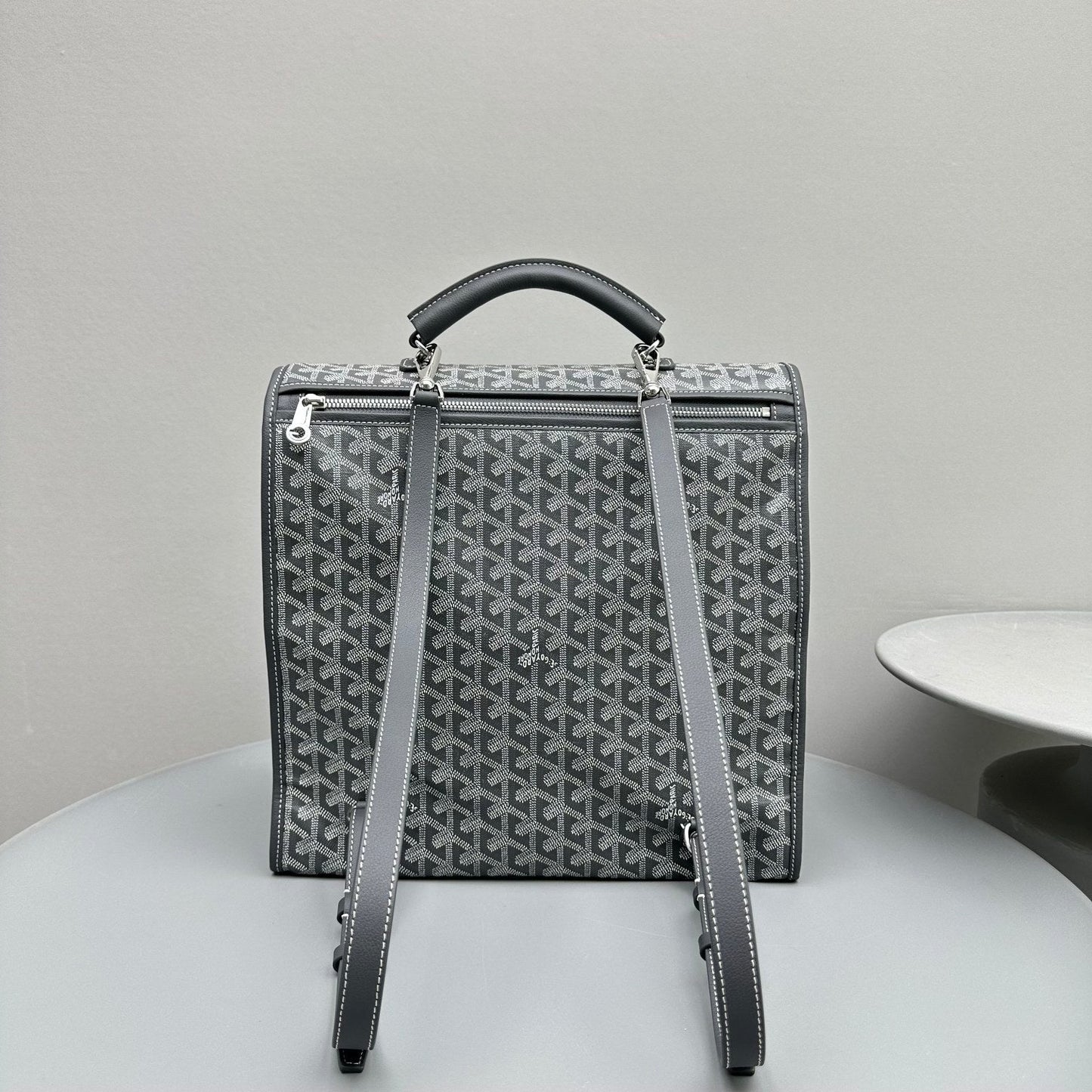 LEGER BACKPACK 37 IN GRAY GOYARDINE CANVAS WITH CALFSKIN TRIM