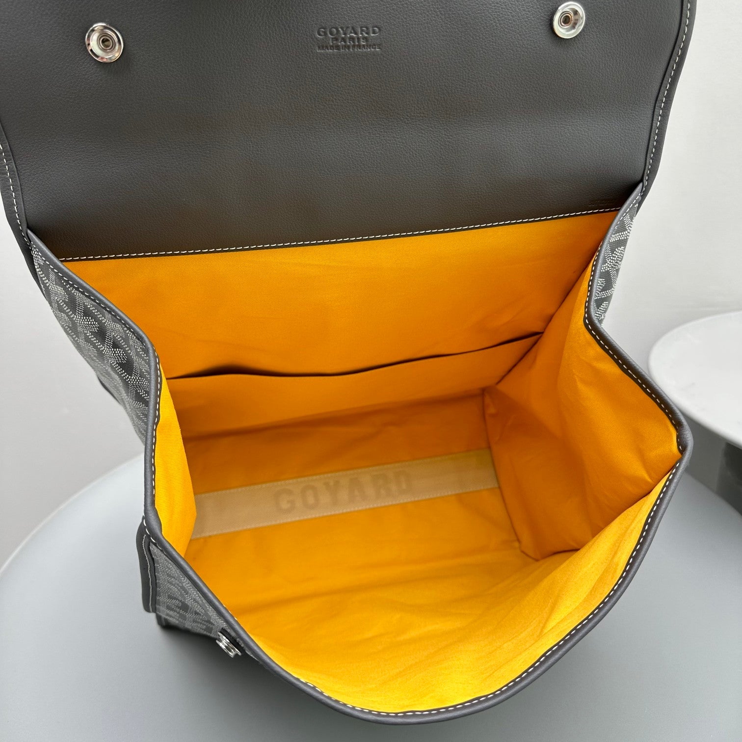 - Material: Goyardine canvas and calfskin trim