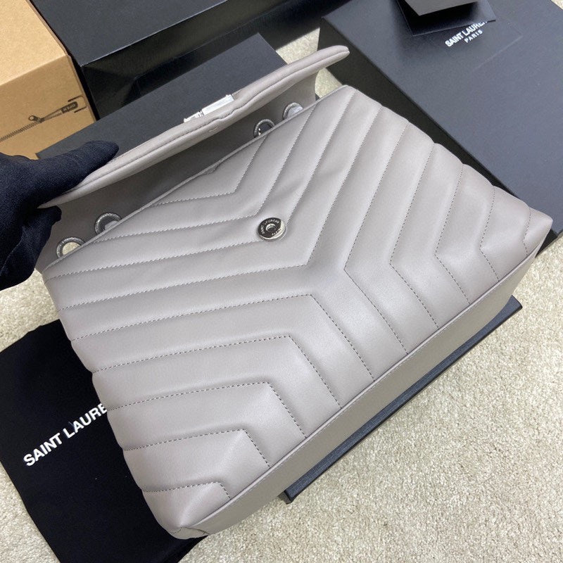 LOULOU MEDIUM 32 GREY QUILTED LEATHER SILVER HARDWARE
