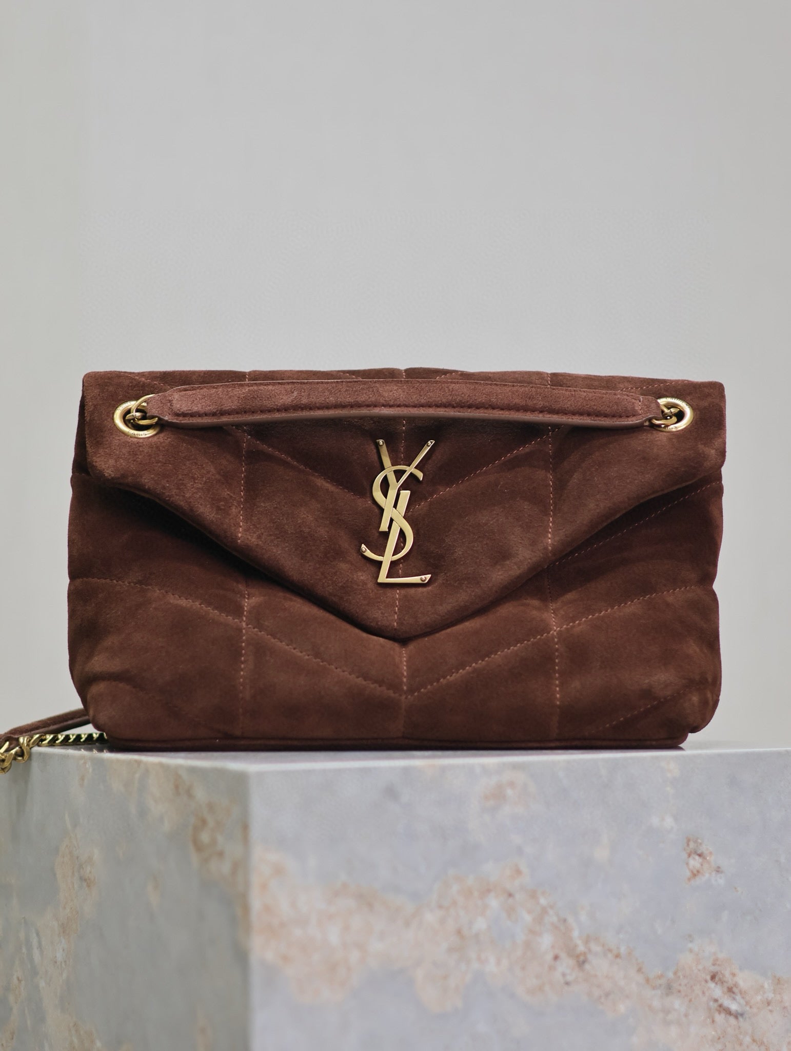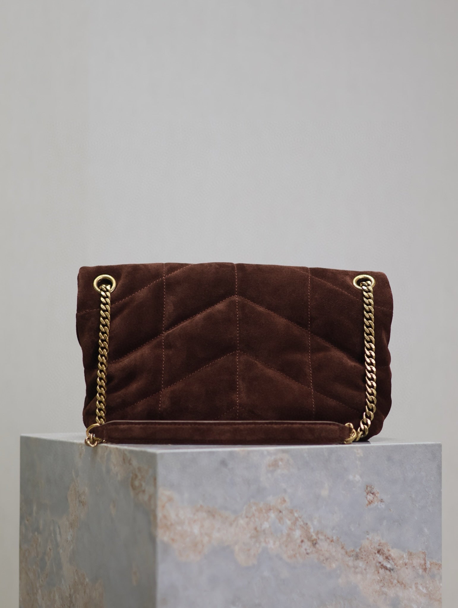 LOULOU PUFFER SMALL 29 CHOCOLATE SUEDE GHW