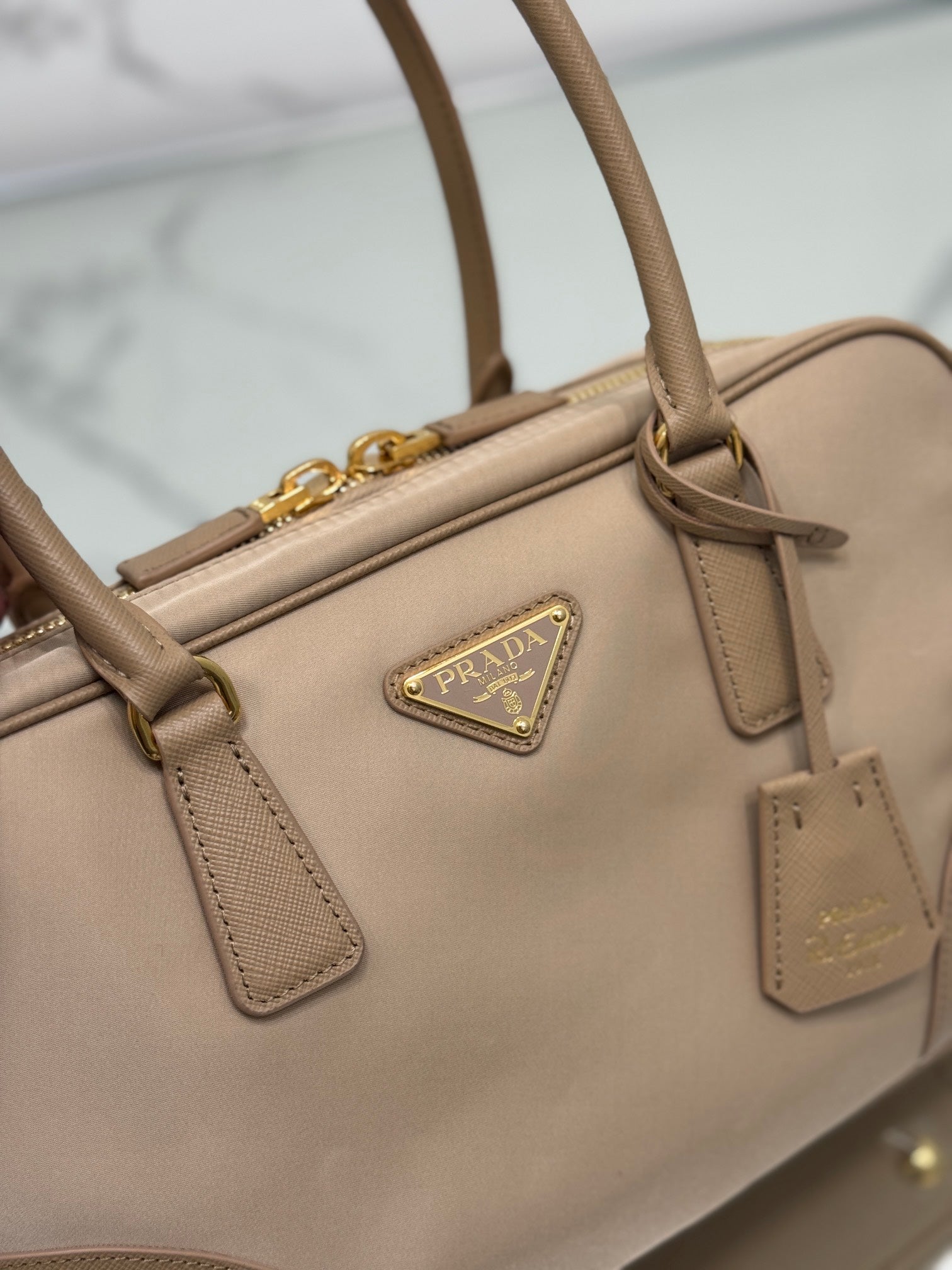 MEDIUM TOP HANDLE BAG 30 IN DRIED MOSS NYLON AND CALFSKIN TRIM