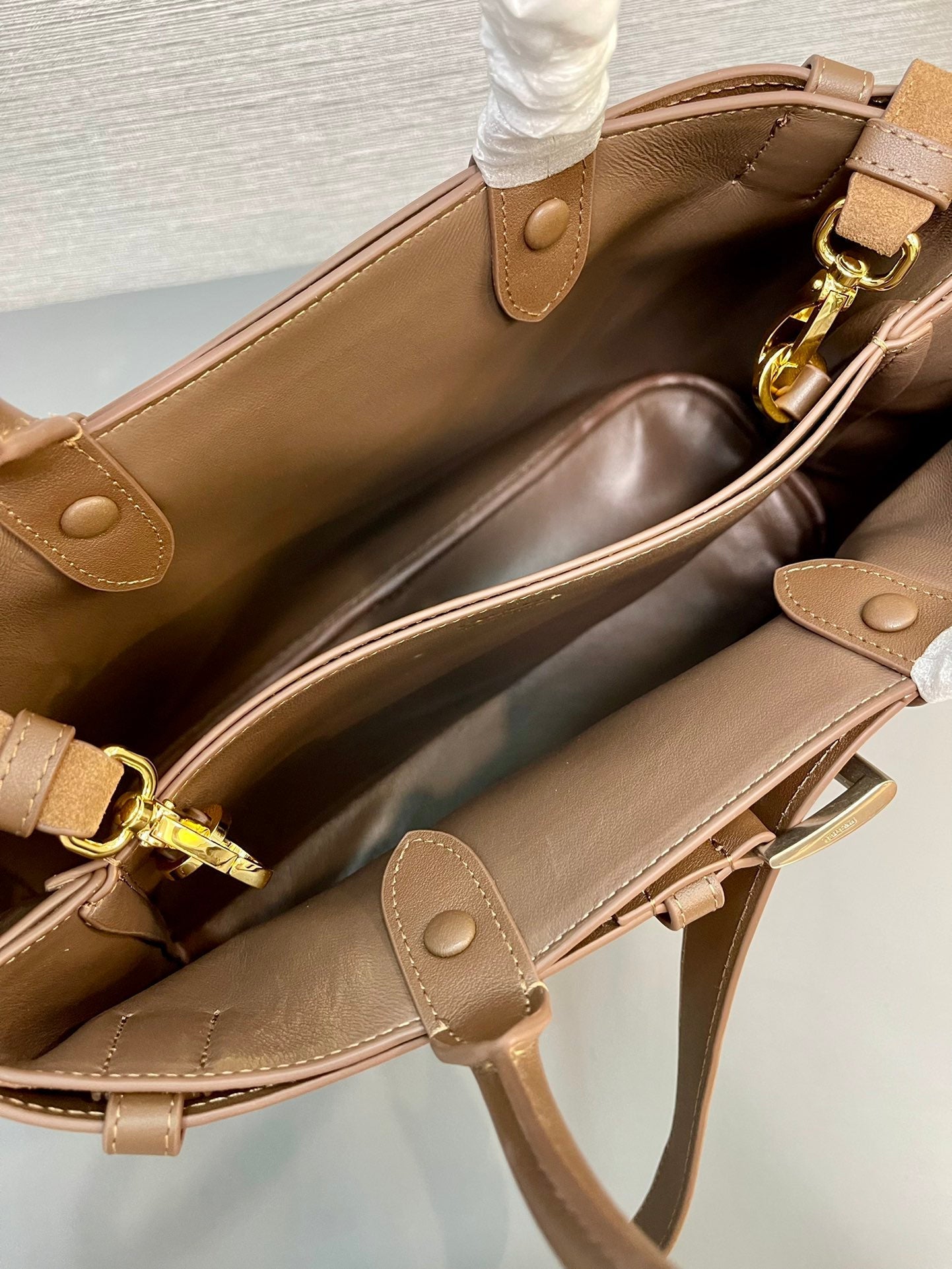 MEDIUM TOTE BAG WITH BELT 35 IN RUSSET BROWN SUEDE
