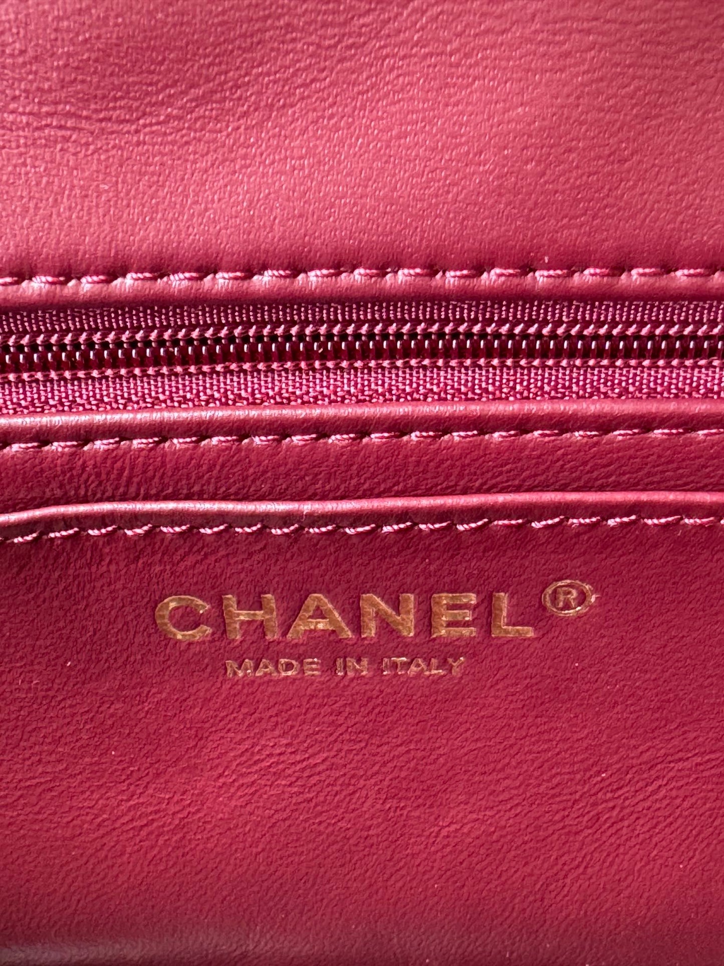 MINI FLAP BAG 20 IN MAHOGANY RED GLOSSY CALFSKIN GOLD HARDWARE