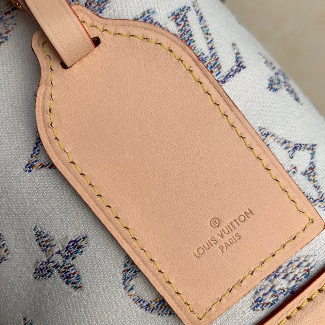 Nano Noe 13x16x10 Beige Leather White Monogram jacquard fabric