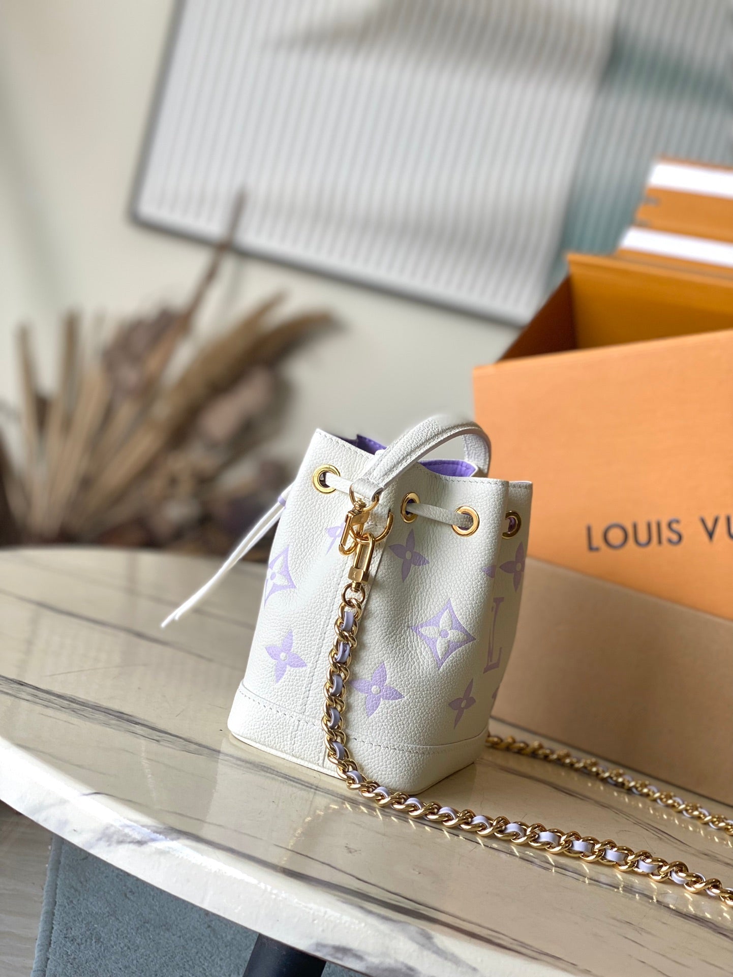 NANO NO¨¦ 16 IN WHITE PURPLE MONOGRAM EMBOSSED CALFSKIN