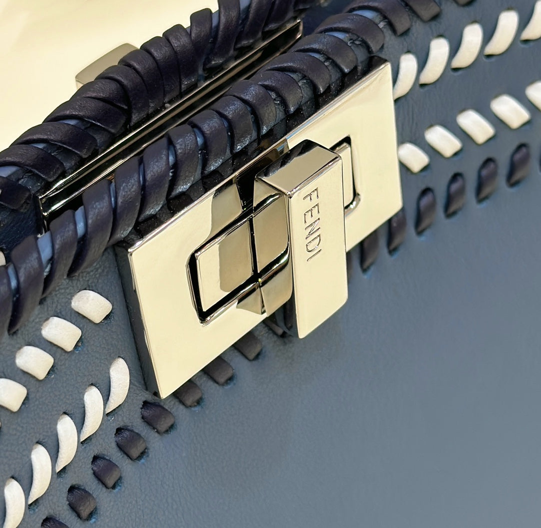 PEEKABOO ISEEU 27 IN BLUE BAYOUX INTERLACED CALFSKIN SILVER HARDWARE
