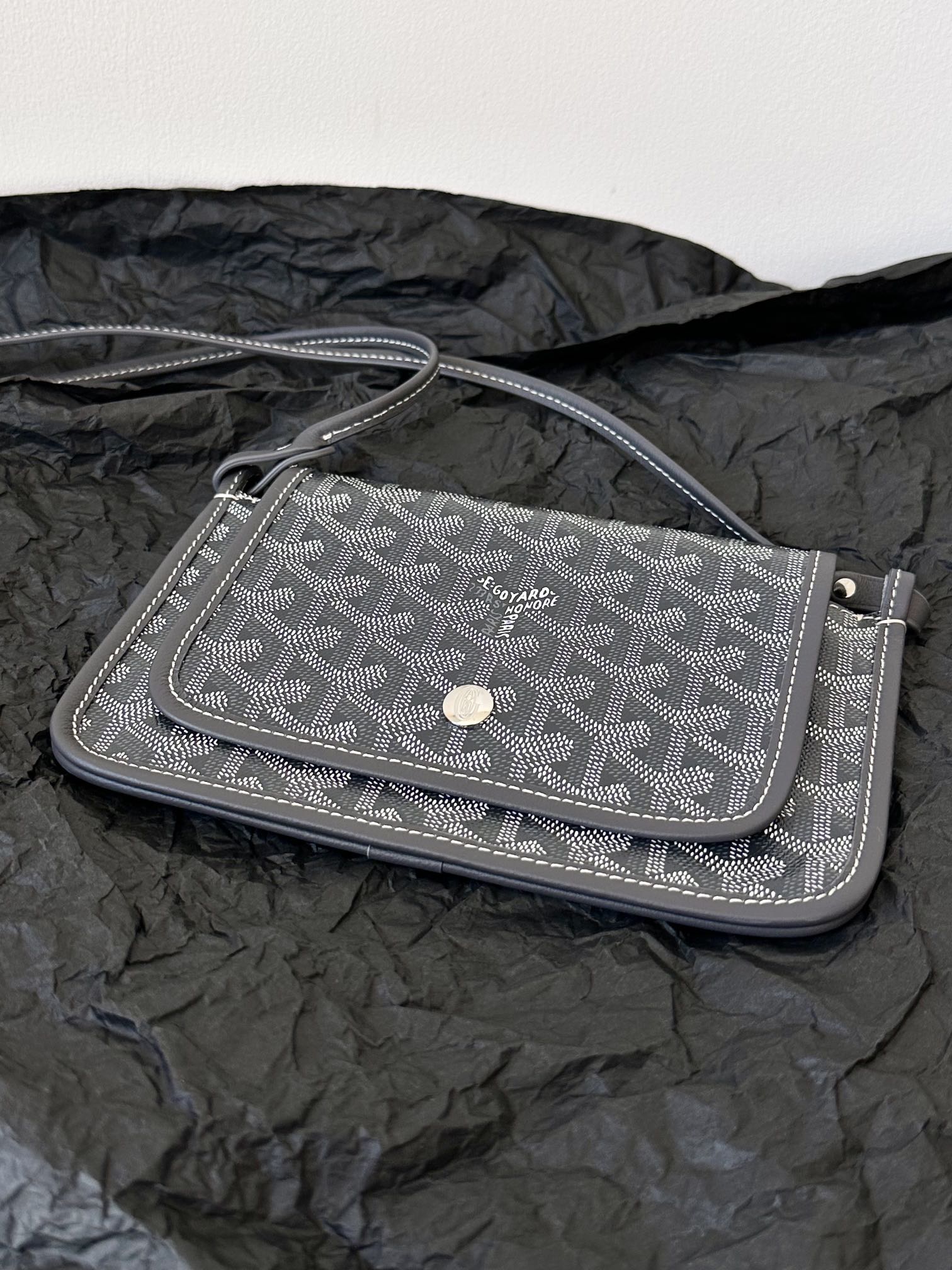 PLUMET POCKET WALLET 20 IN GREY BLACK GOYARDINE CANVAS AND LAMBSKIN TRIM