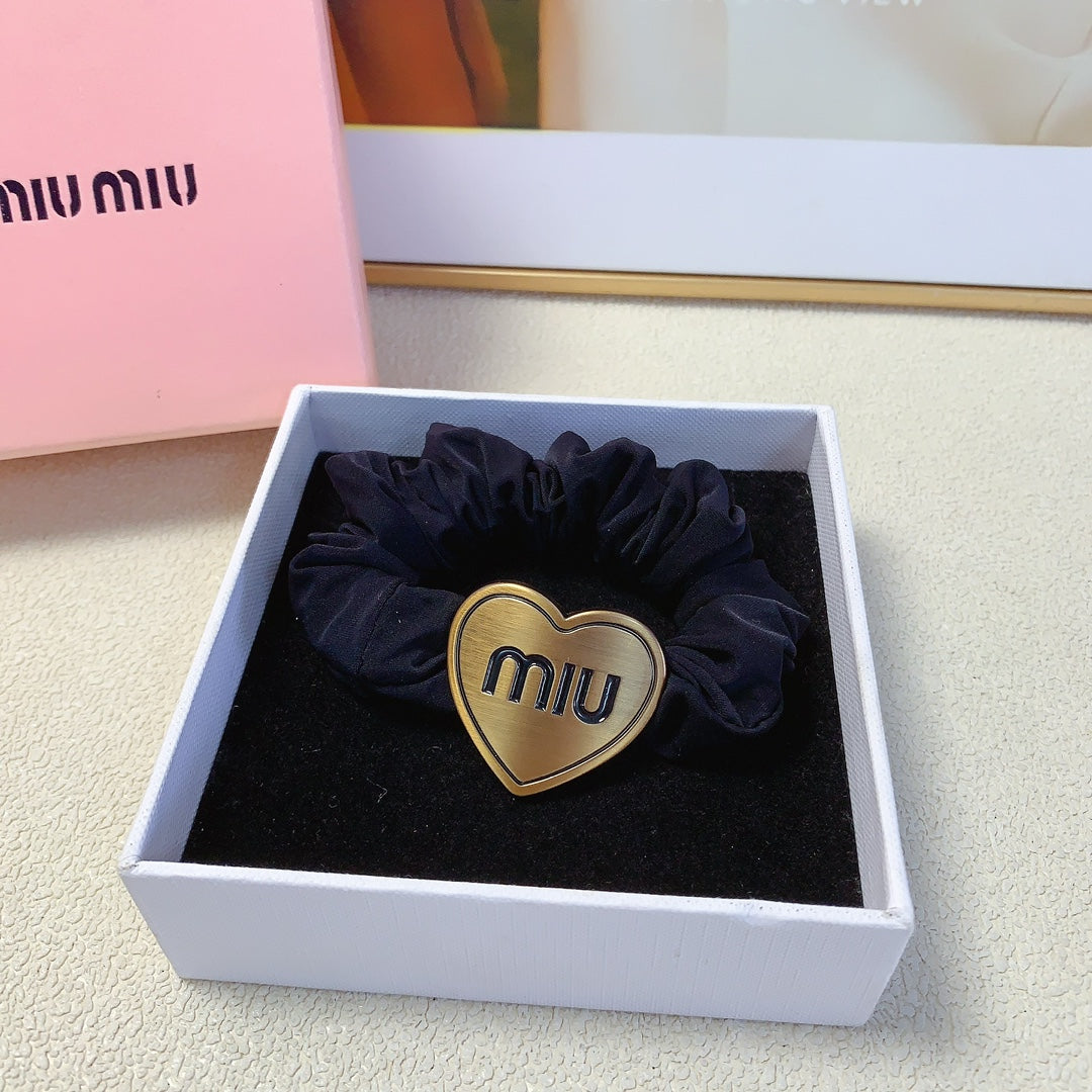 SCRUNCHIE WITH HEART ICON IN BLACK SPANDEX FABRIC 397152