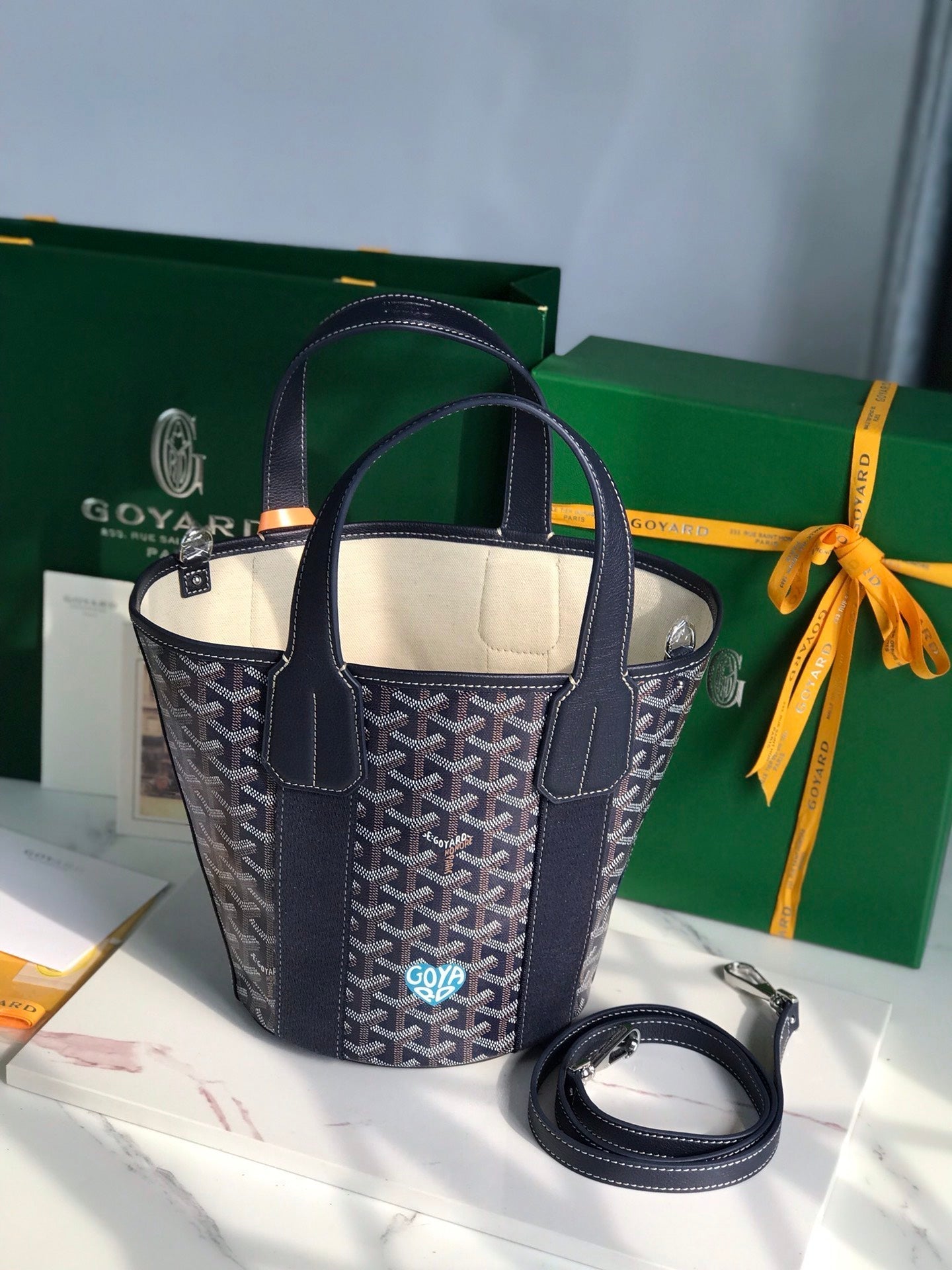 SMALL BELHARRA 24 IN NAVY BLUE GOYARDINE CANVAS AND LAMBSKIN