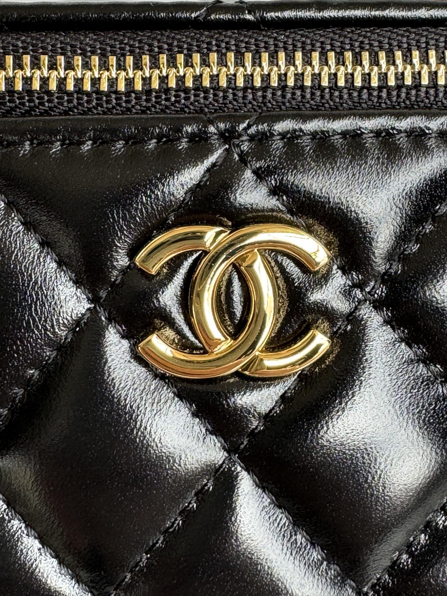 SMALL VANITY CASE 17 WITH HANDLE IN BLACK CALFSKIN GOLD METAL CHAIN