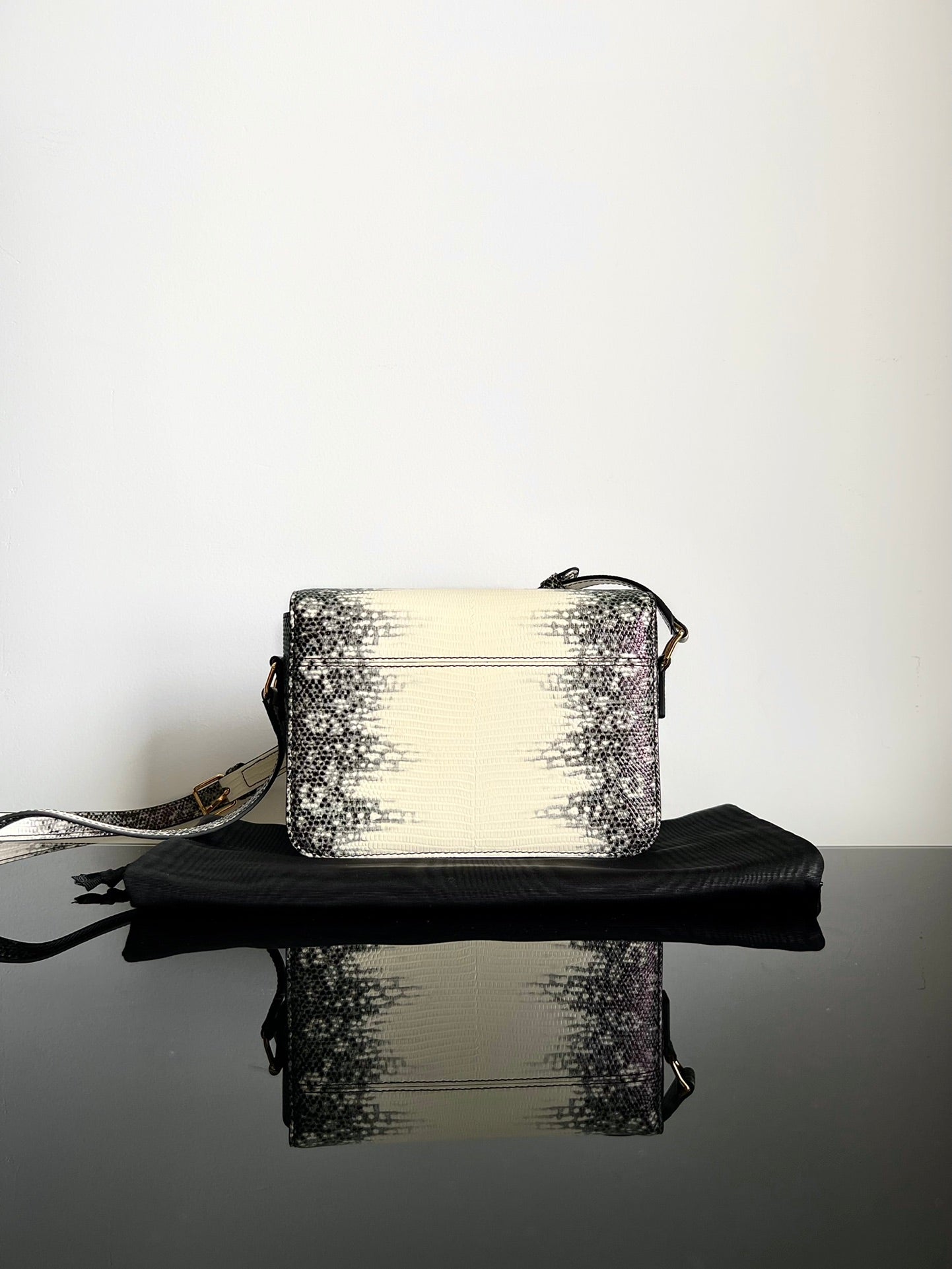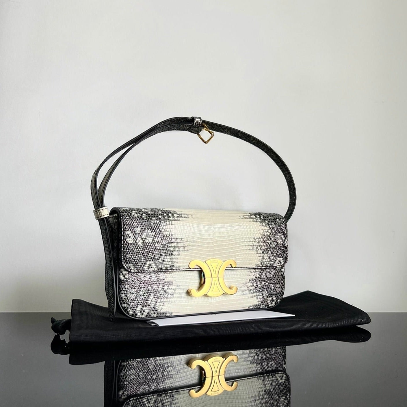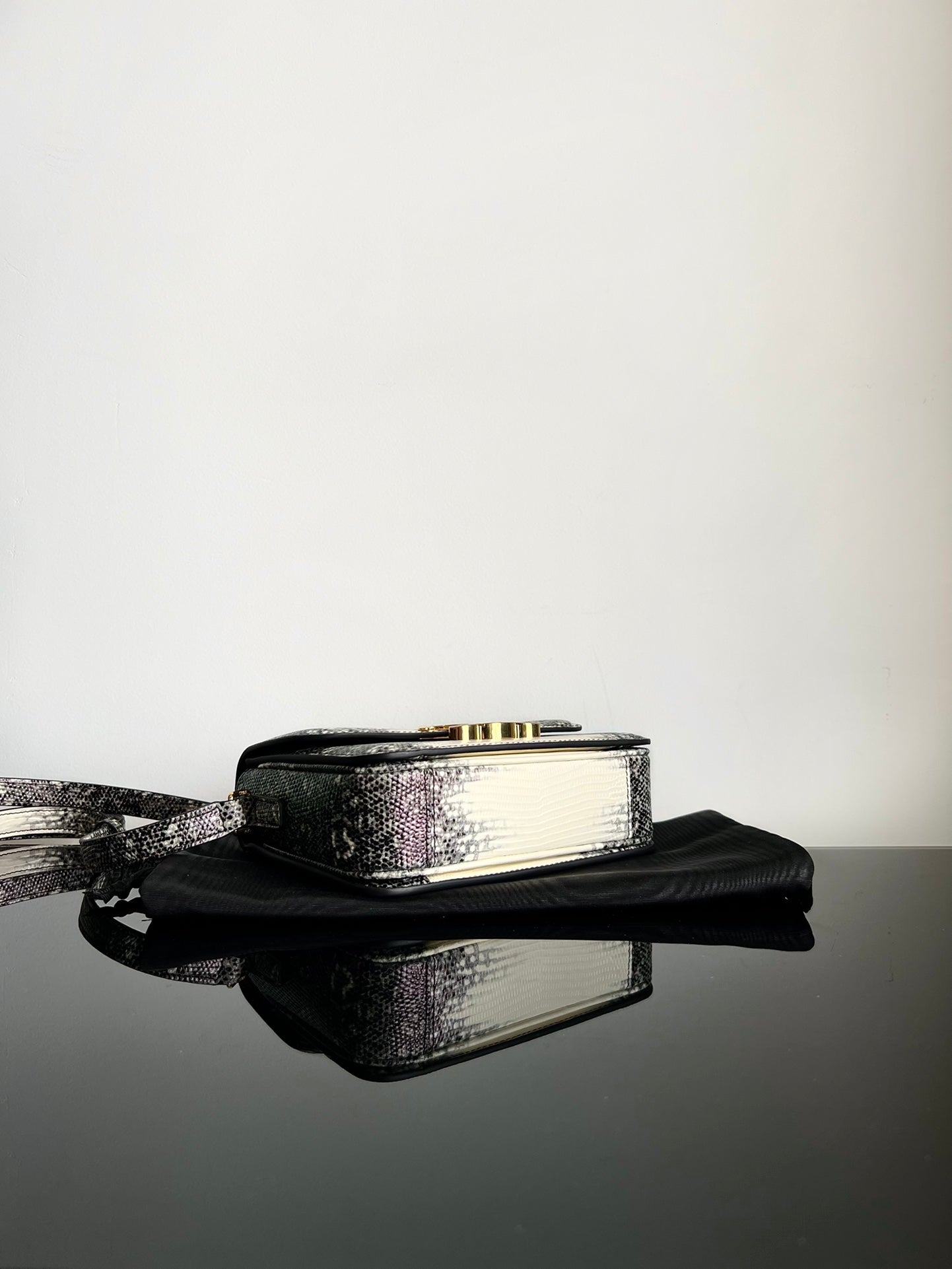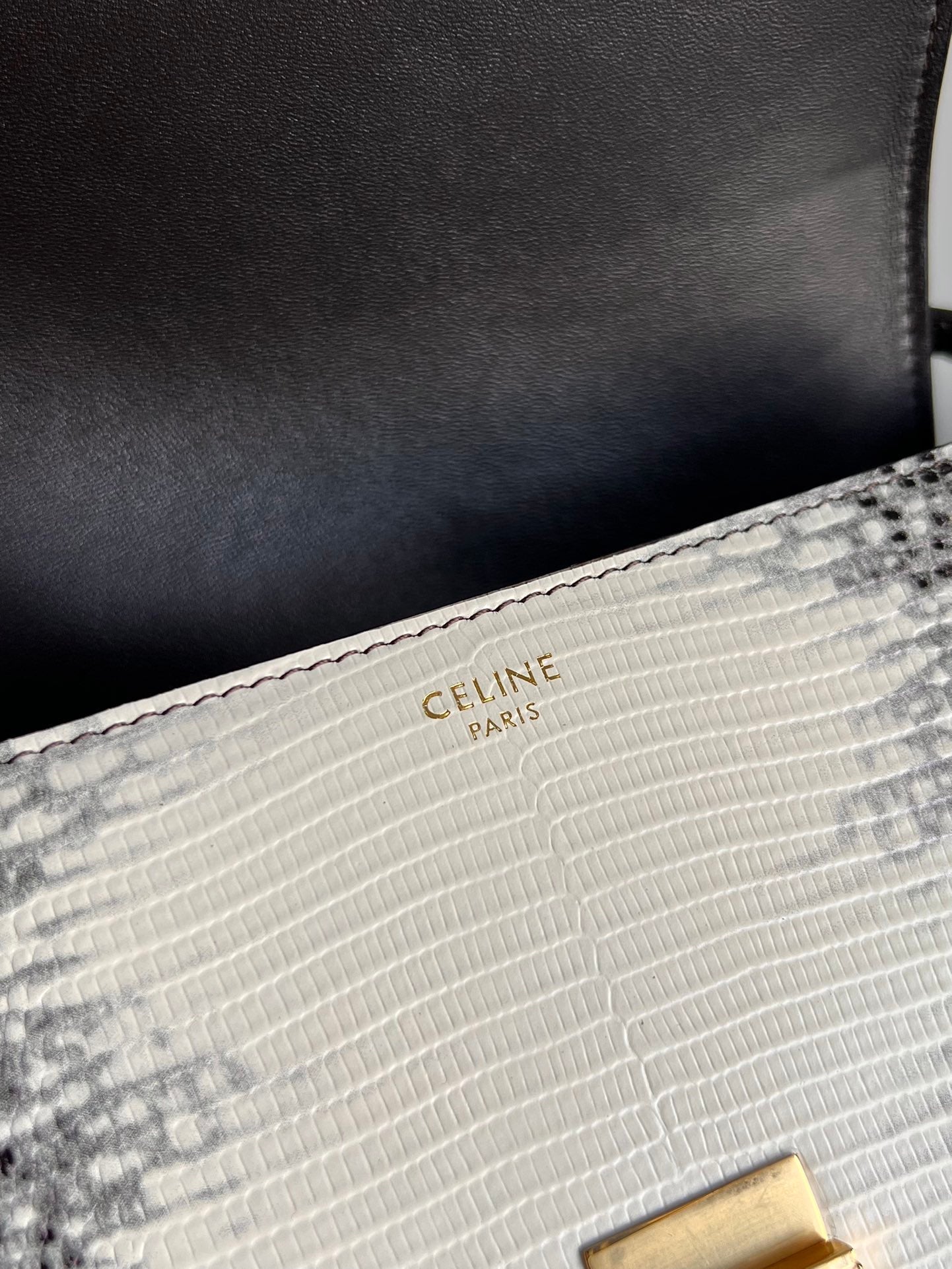- Color: Black White leather, Gold hardware