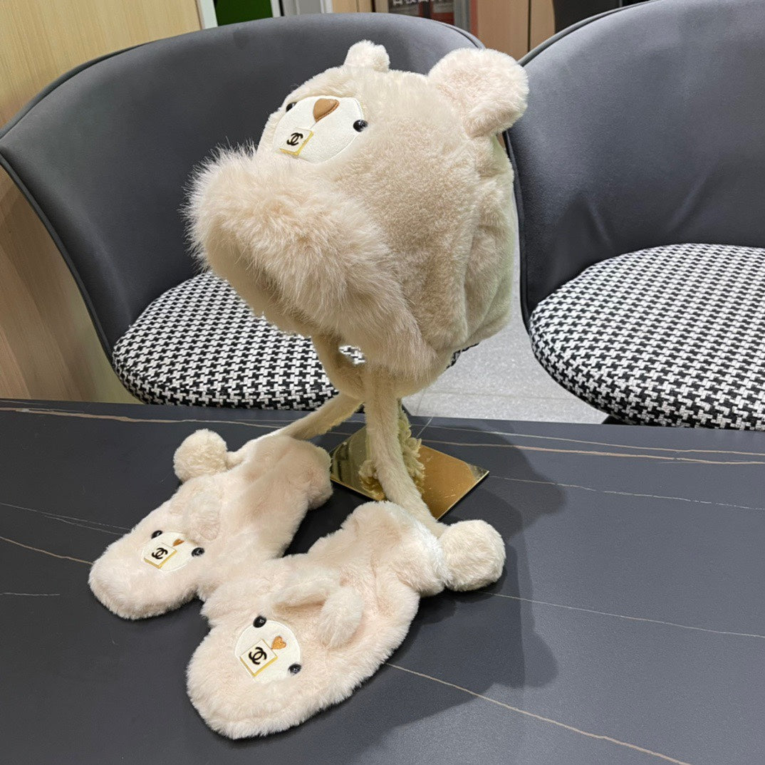 - Three-Piece Set for women, featuring a cute bear-shaped plush hood, scarf, and gloves, ideal for autumn and winter.