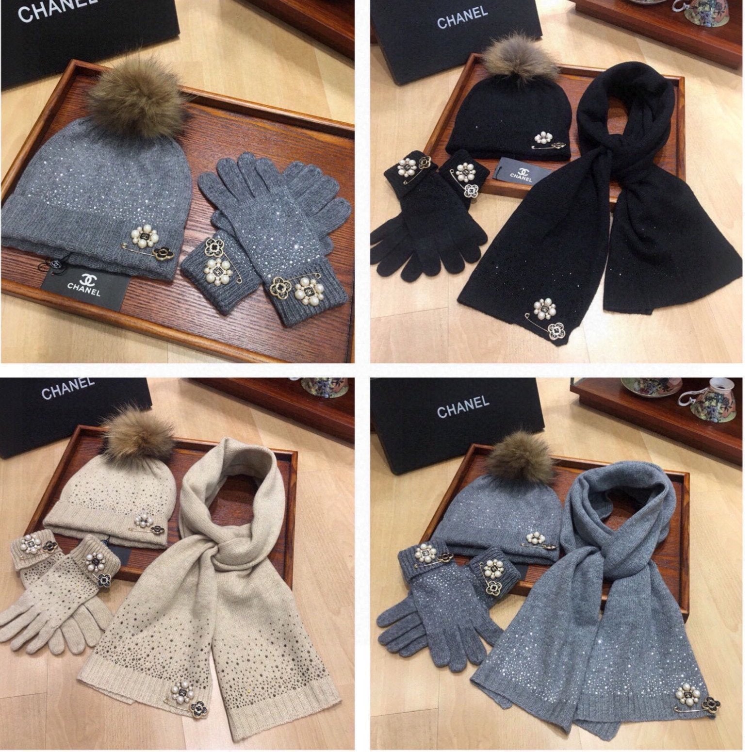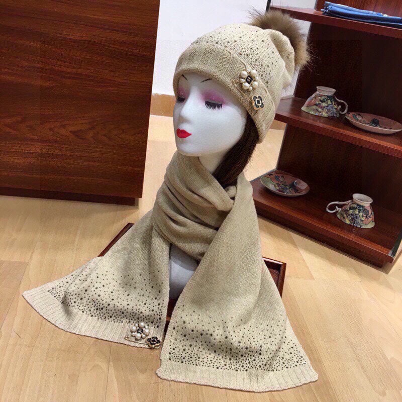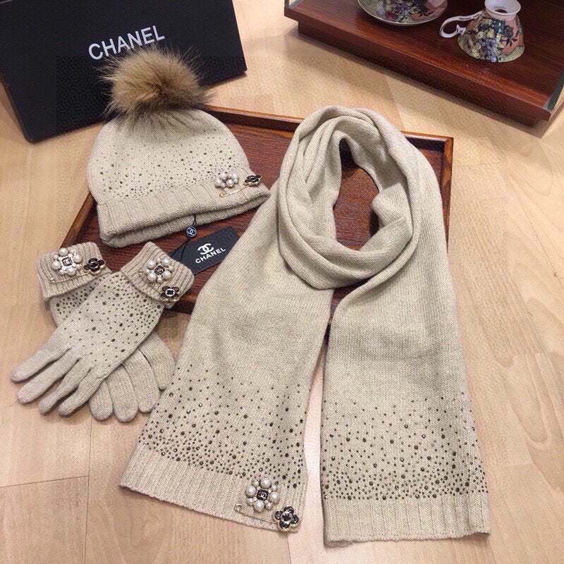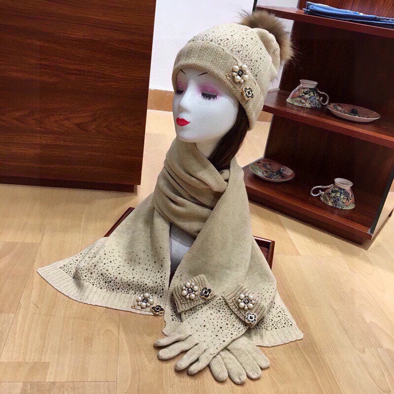 - Cashmere Knit Scarf, Hat, and Gloves Set