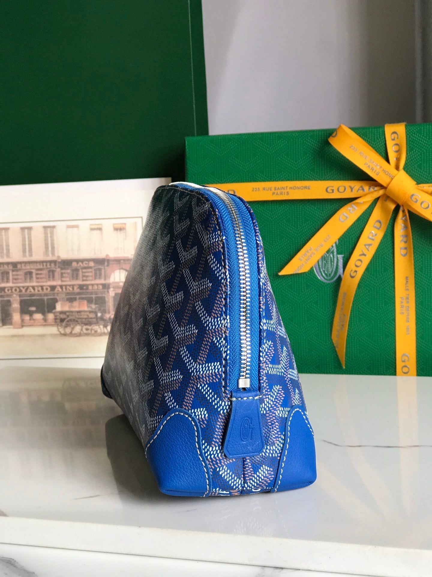 VEND?ME COSMETIC POUCH 17 IN SAPPHIRE BLUE GOYARDINE CANVAS AND CALFSKIN TRIM