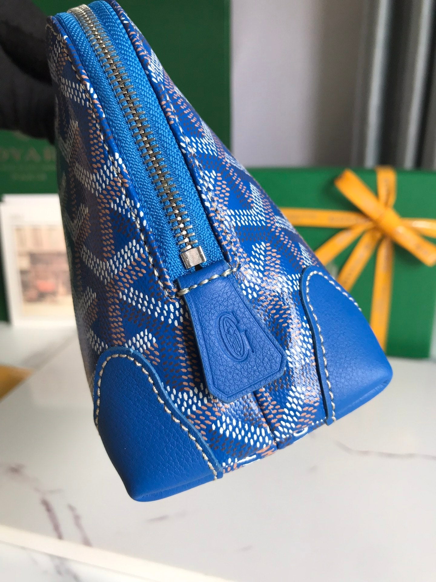 - Material: Goyardine canvas and calfskin trim