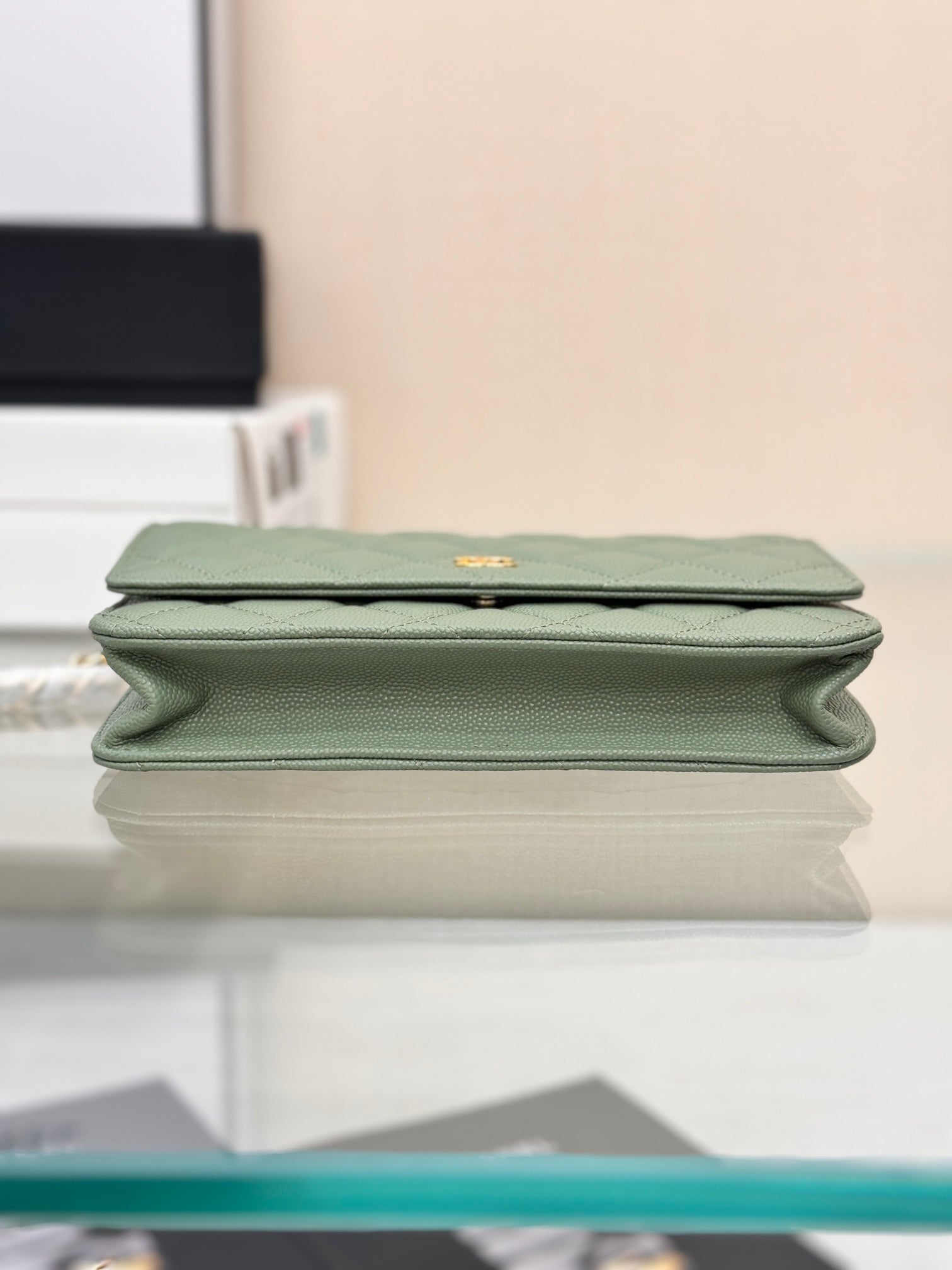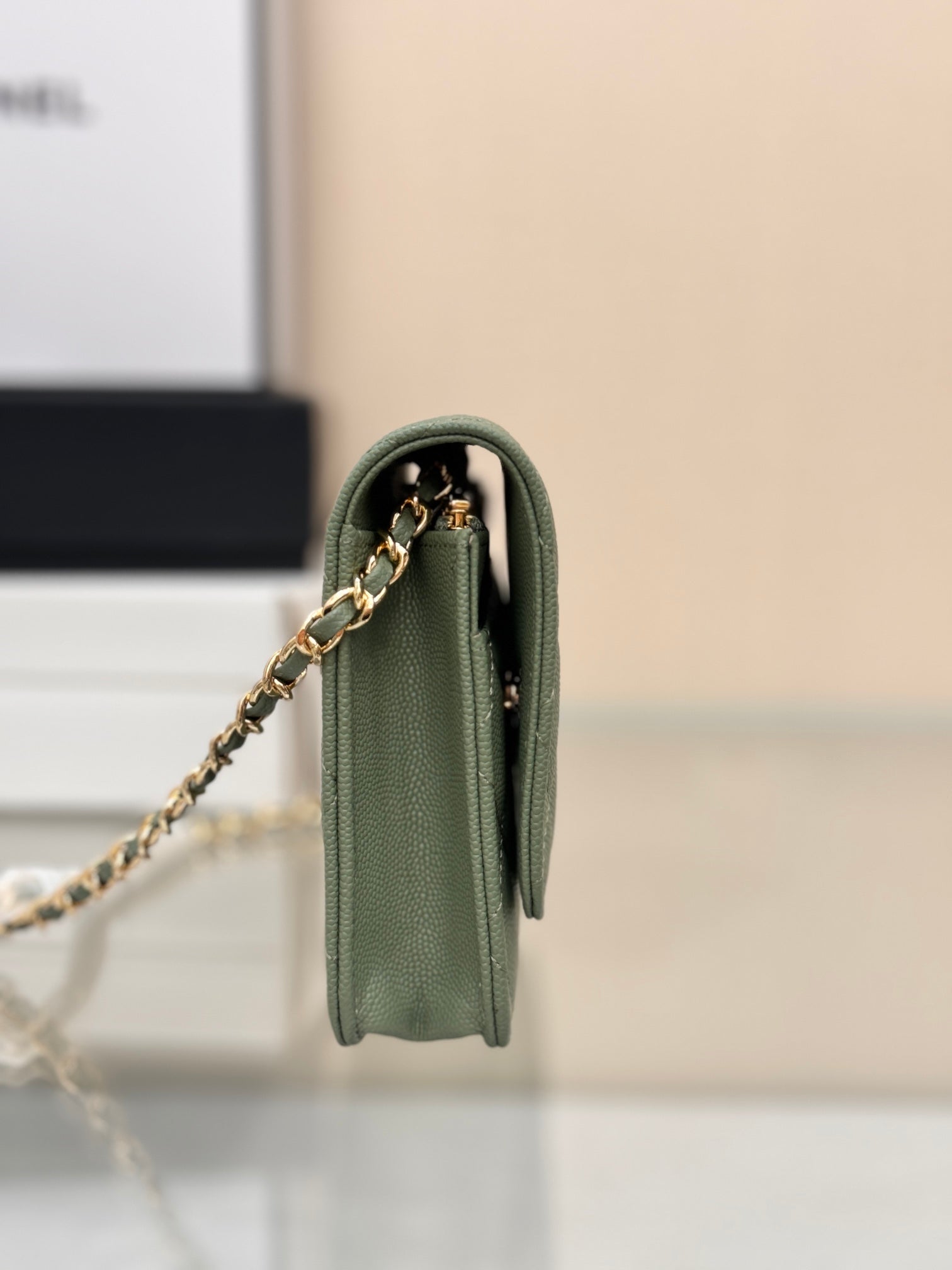 WOC 19CM KHAKI BLUE CAVIAR GOLD HARDWARE